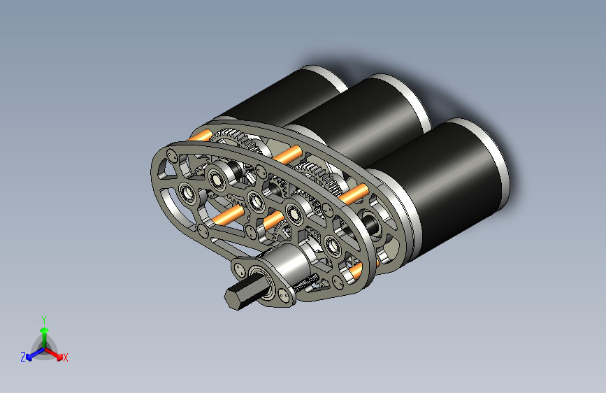 三连电机小齿轮箱3D数模图纸 STEP格式(ID:1013367)