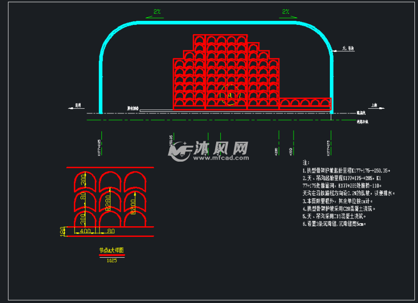 铁路工程路堑溜坍整治拱形骨架护坡设计图(ID:1020299)