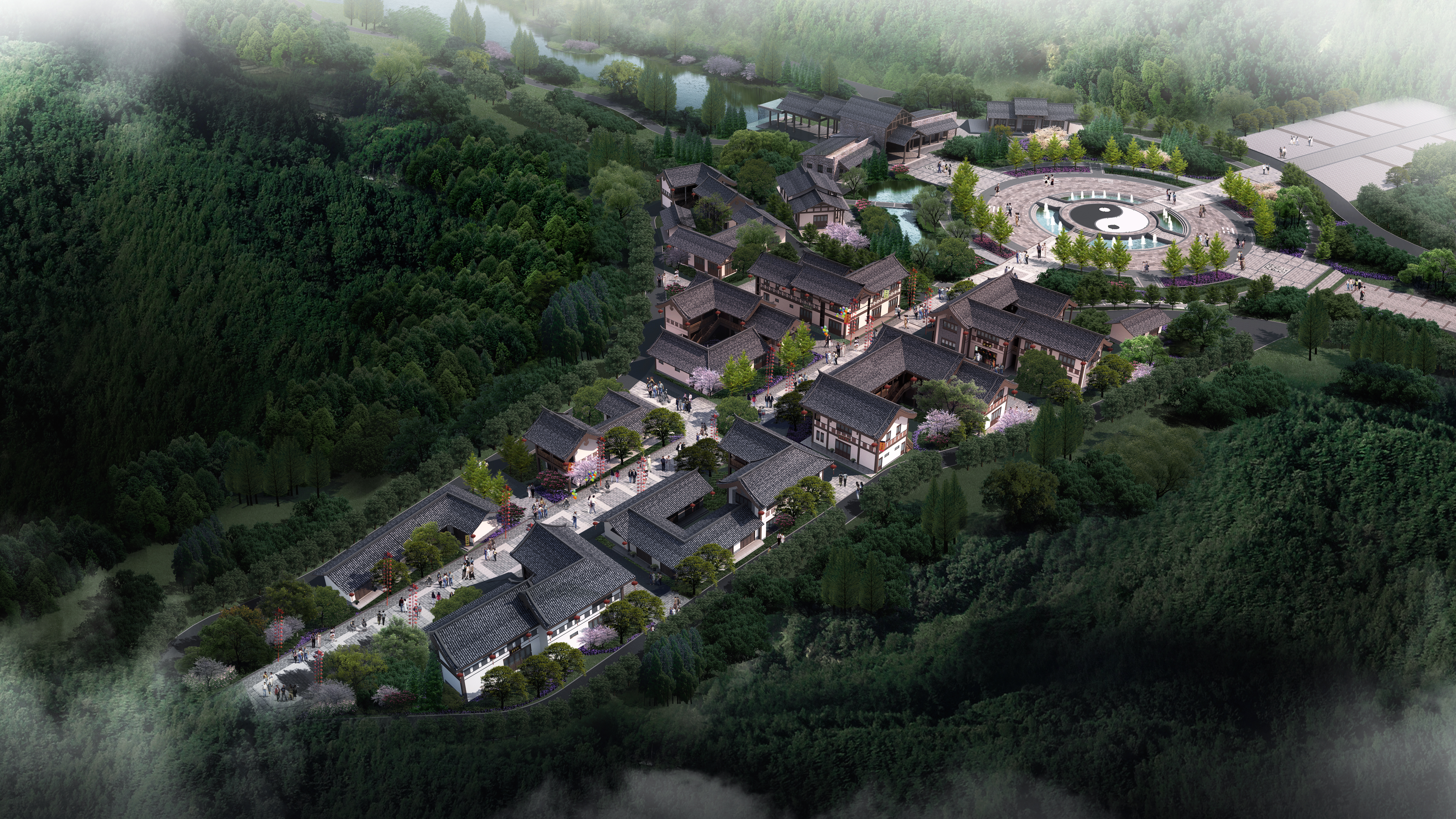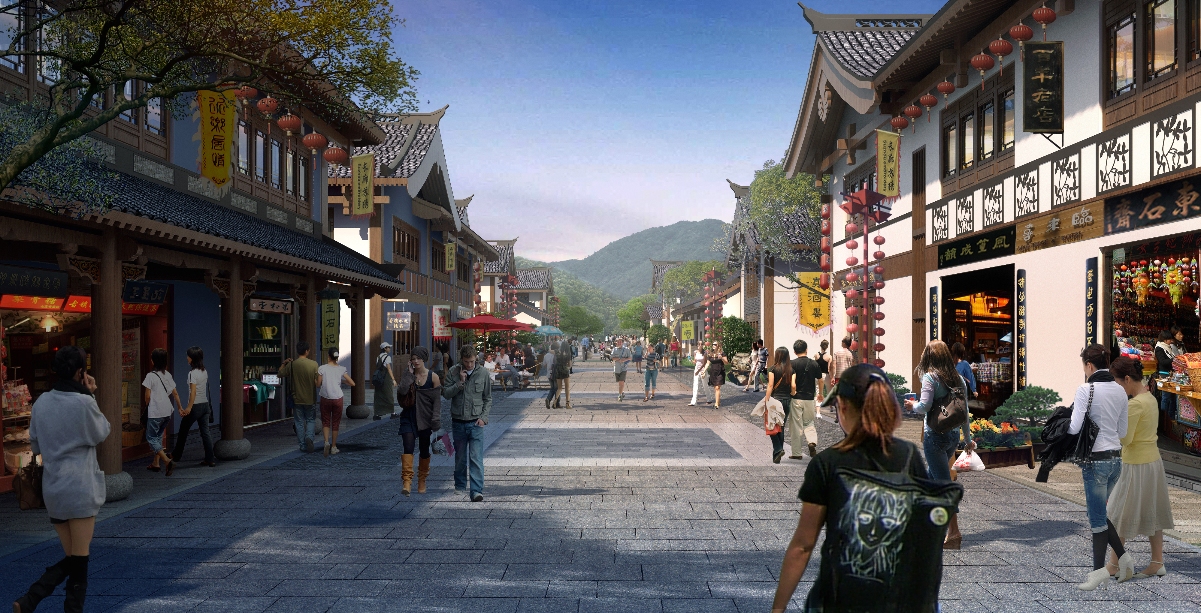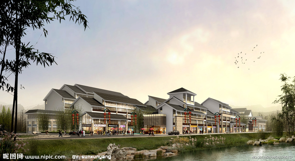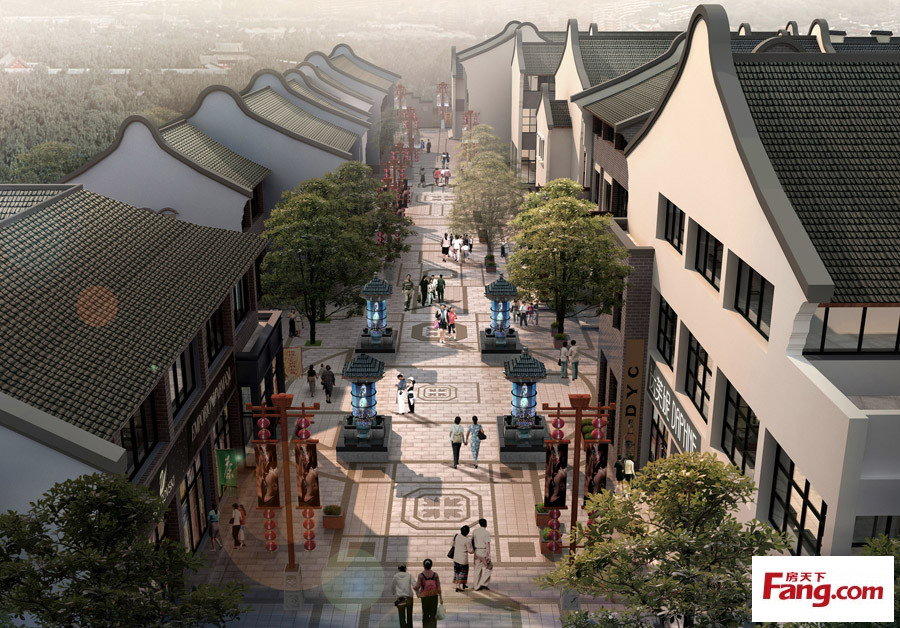 S007中式仿古商业步行街规划建筑设计cad施工图+效果图(ID:1075581)