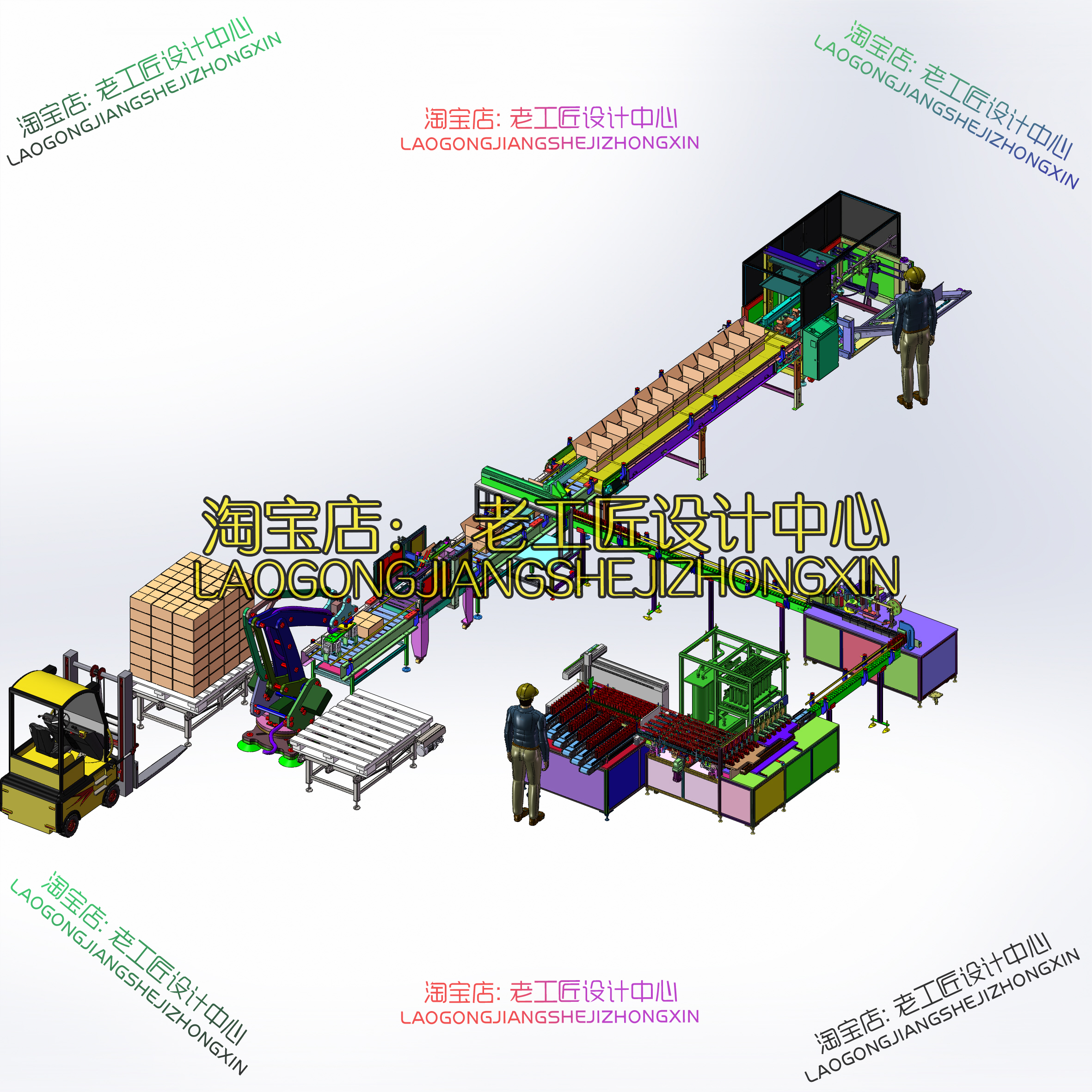 B32-全自动排瓶灌酸灌装自动封口自动贴标签自动折纸箱封纸箱自动搬运码垛流水线(ID:1114799)