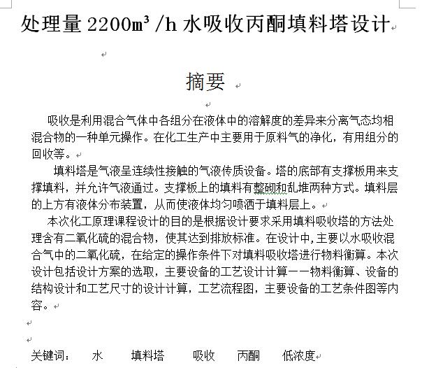 处理量2200m3h水吸收丙酮填料塔设计414958=100(ID:1239467)