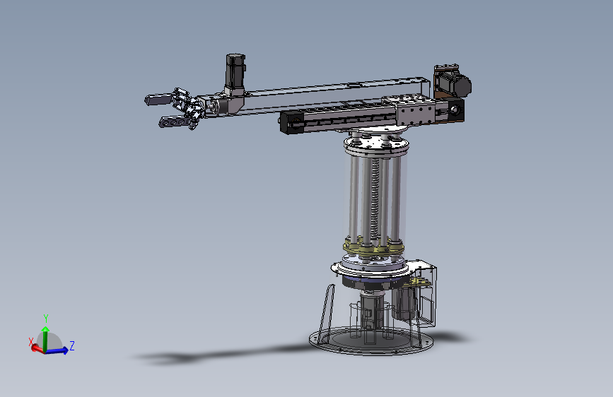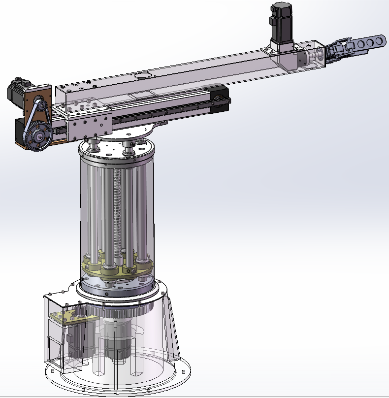 机械手是一种能模仿人手和臂的某些动作功能,用以按固定程序抓取、搬运物件或操作工具的自动操作装置。特点是可以通过编程来完成各种预期的作业,构造和性能上兼有人和机械手机器各自的优点。该机械手具有升降、伸缩、旋转等功能,可满足生产作业要求,模型为sw2021版本