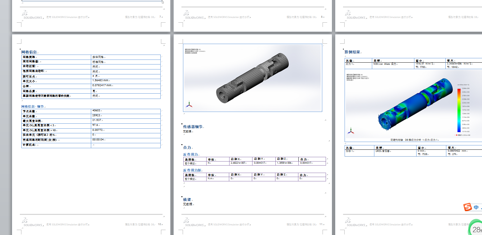 11 | 花键传动轴D8-静应力分析1.CWR | 27.45M |