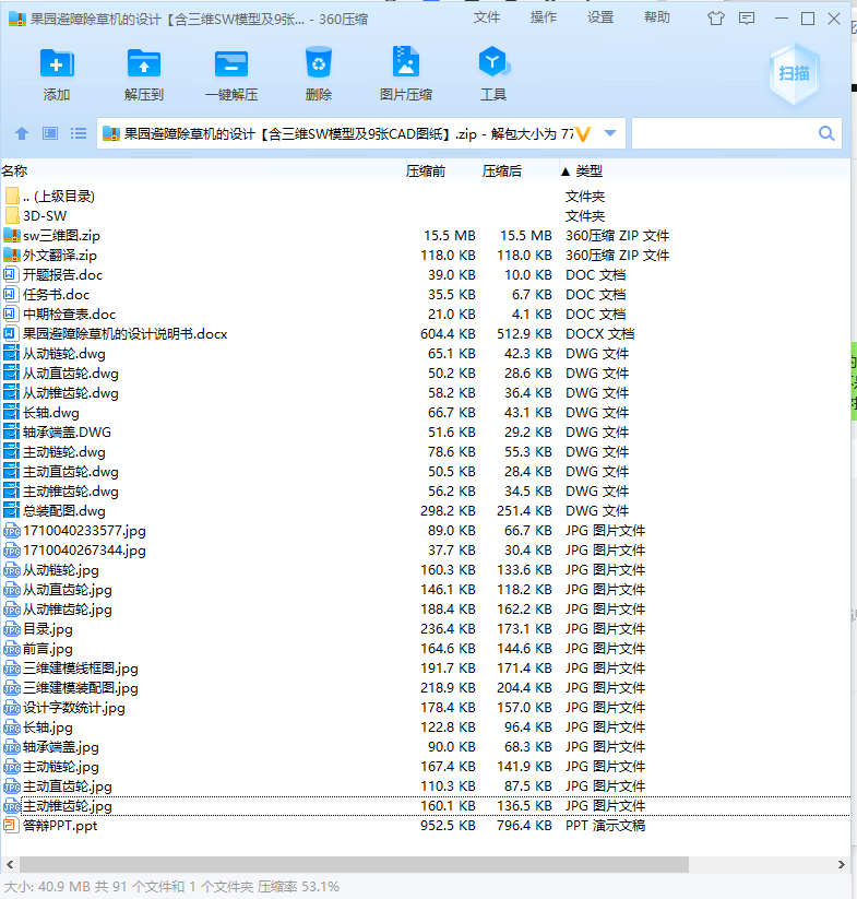 果园避障除草机的设计【含三维SW模型及9张CAD图纸】(ID:1467350)