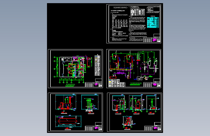 根据甲方要求,锅炉房内设两台燃油蒸汽锅炉,每台蒸发量为: 2t/h,;及其配套设备。图纸包含设计说明,锅炉房布置平面图,锅炉房管道系统流程图,剖面图。
