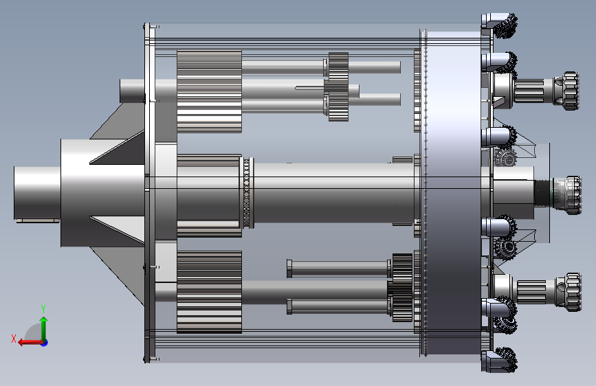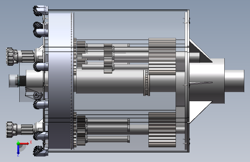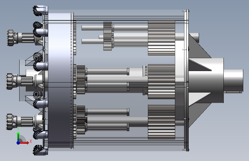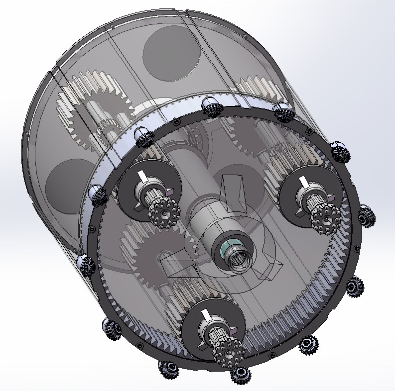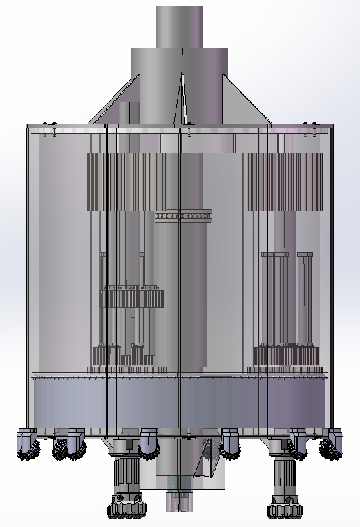 大直径桩基础工程成孔钻具I型钻具总体设计。设计内容包括行星齿轮传动部分的设计、钻具的设计、主轴的设计以及泥浆循环系统的设计等几个主要部分。设计后的钻具配套功率小,既能够产生旋转运动又能产生冲击运动,且利用气举反循环排渣快速成孔,该模型为sw2020版本