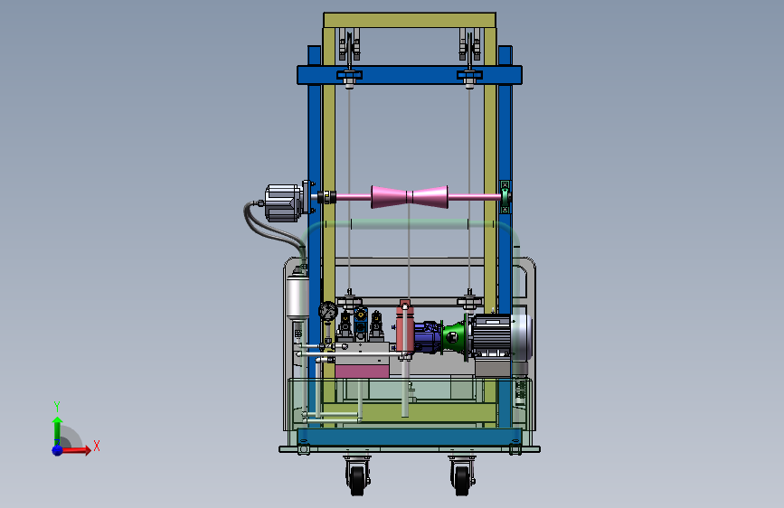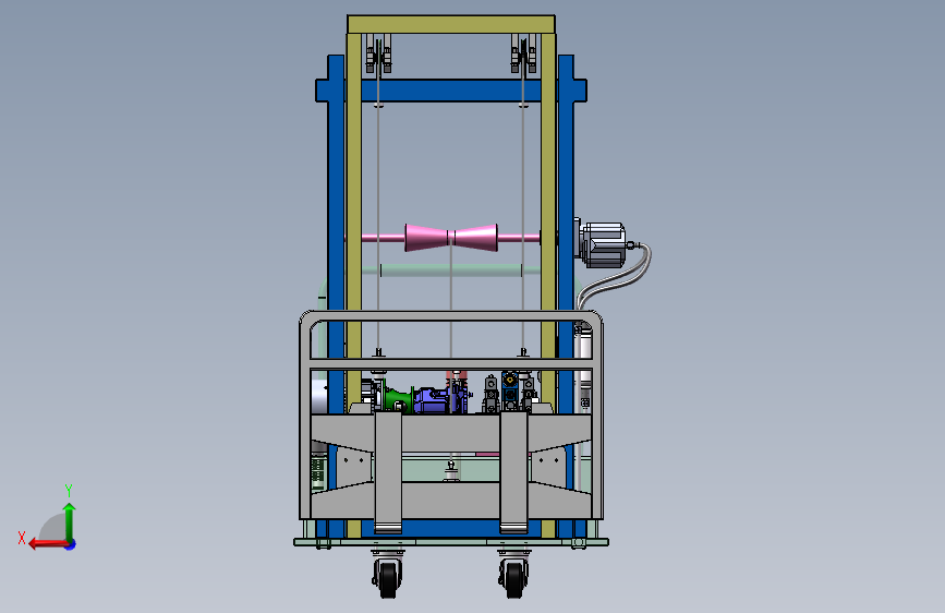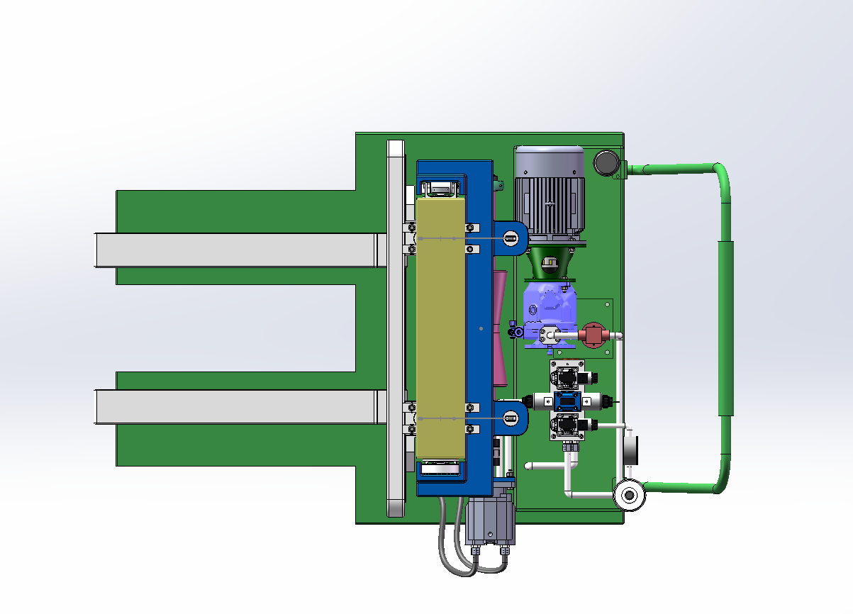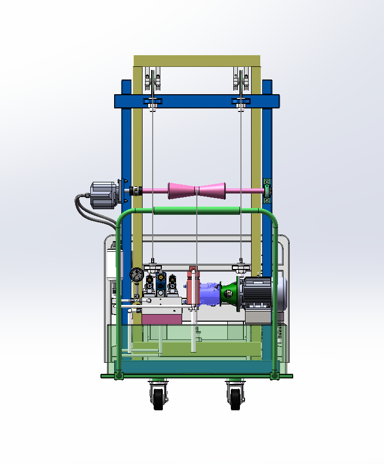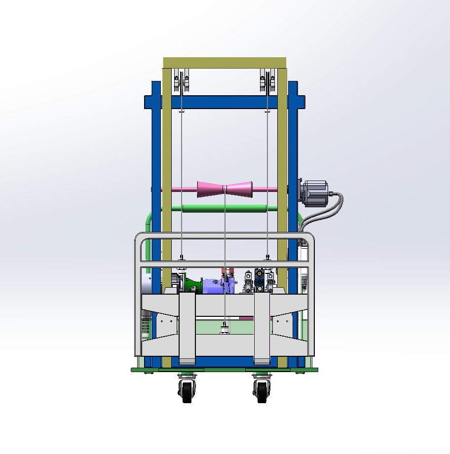 包含全套三维SW2018零部件以及总装配图,包含二维CAD液压系统原理图和总装配二维。对传统升降台功能简单、适用范围小的问题所提出来的课题,力求设计一种方便、灵活、适用性广的小型可行走升降台,设备结构参数为:额定起重量500kg,载荷中心距500mm,最大起升高度5m。升降部分主要用于提升和降落货物,主要由门架(内门架、外门架)、起升液压马达和绳索等部分组成。底盘部分主要包括车轮、制动机构及动力装置等,用于承载升降台的主体部分和进行行走。此次设计主要针对升降台的升降装置部分尤其是门架和货叉以及滚轮组件进行设计计算,对底盘部分未做重点设计,采用万向轮做为行走机构。