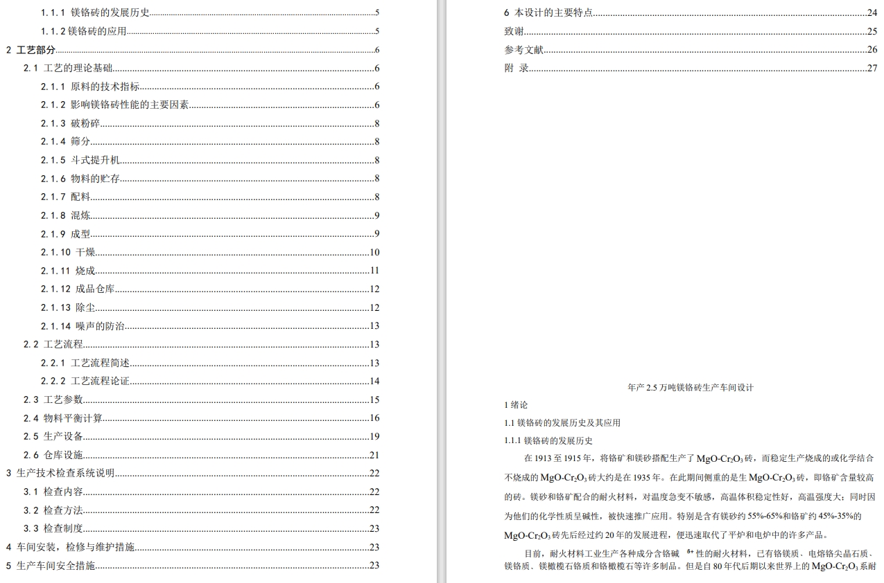 E1511-年产2.5万吨镁铬砖生产车间设计CAD+说明书(ID:1526844)