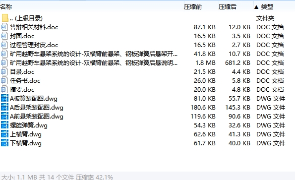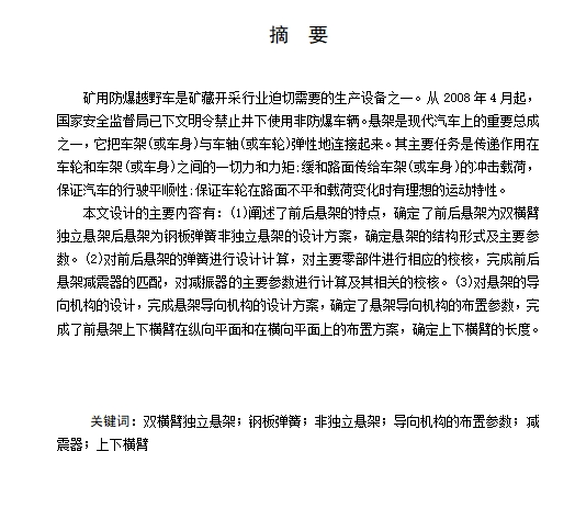 15 | 矿用越野车悬架系统的设计-双横臂前悬架、钢板弹簧后悬说明书.doc | 1.85M |