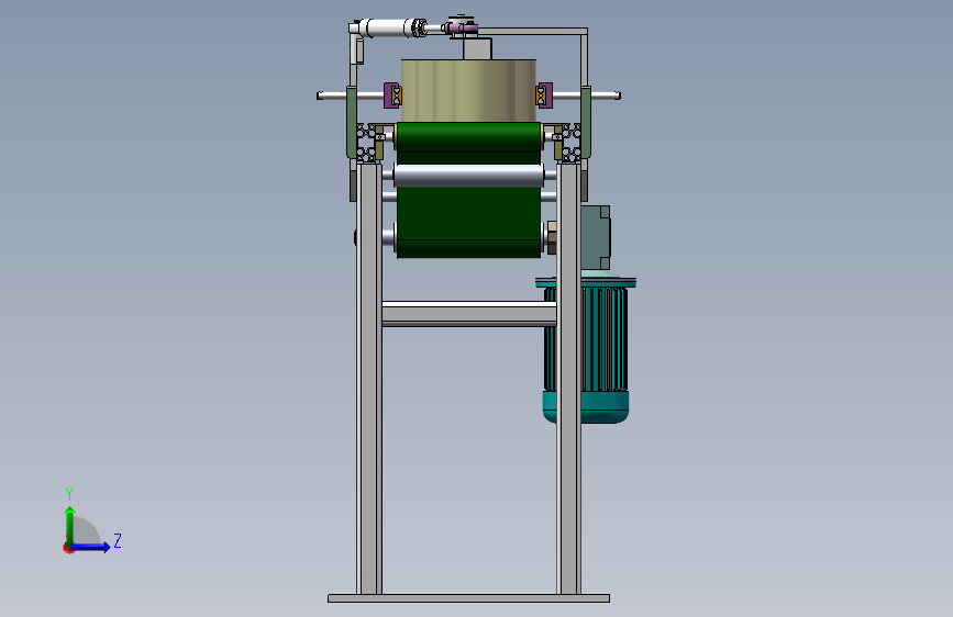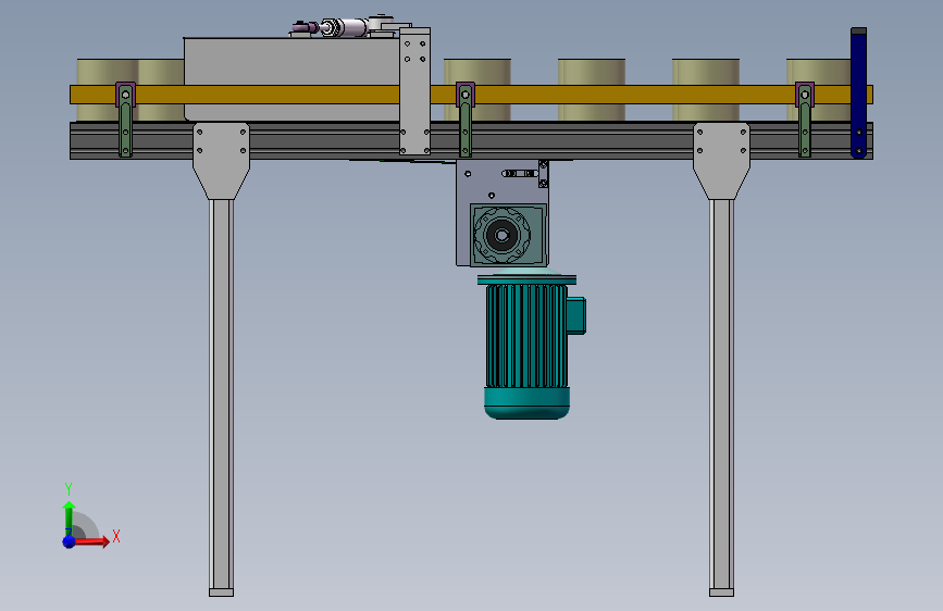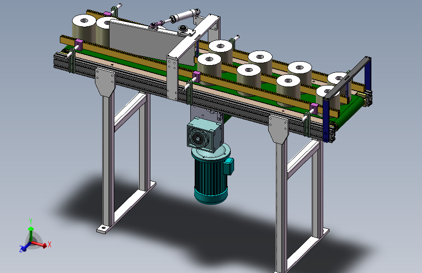 由涡轮蜗杆减速电机驱动,驱动辊筒在中间,驱动PVC输送带输送纸卷运动。