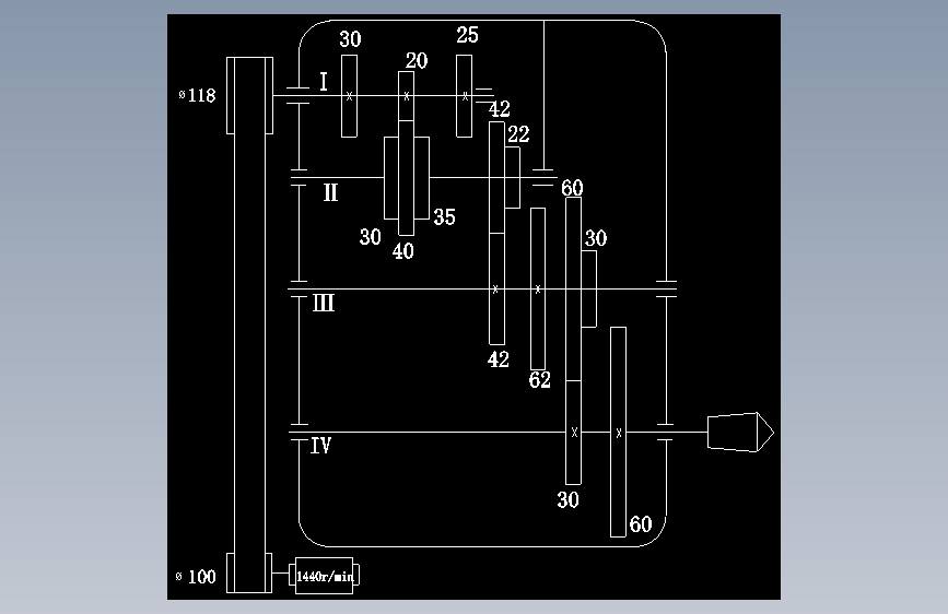 最大加工直径250mm车床主轴箱设计P=4kw,转速112-2500,公比1.41含5张CAD图(ID:1628820)