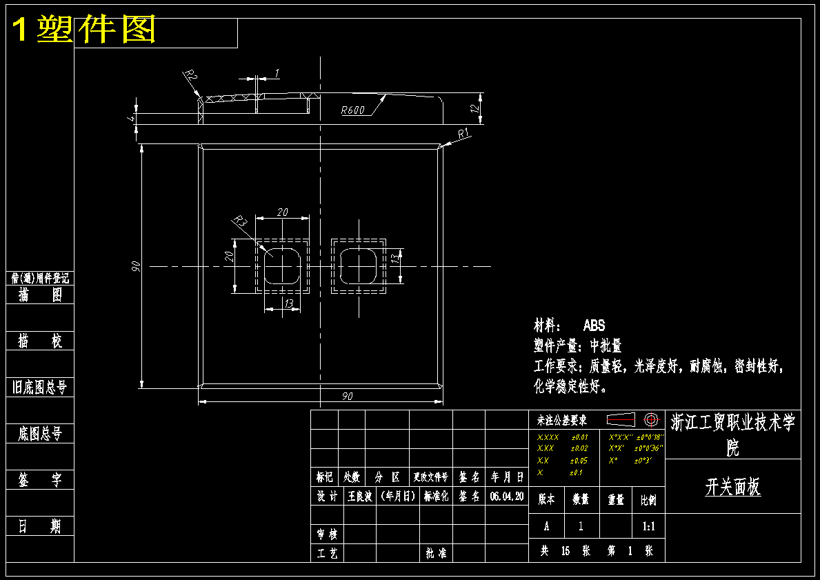 壁式电源开关面板注塑模设计【15张CAD图纸】(ID:1645999)