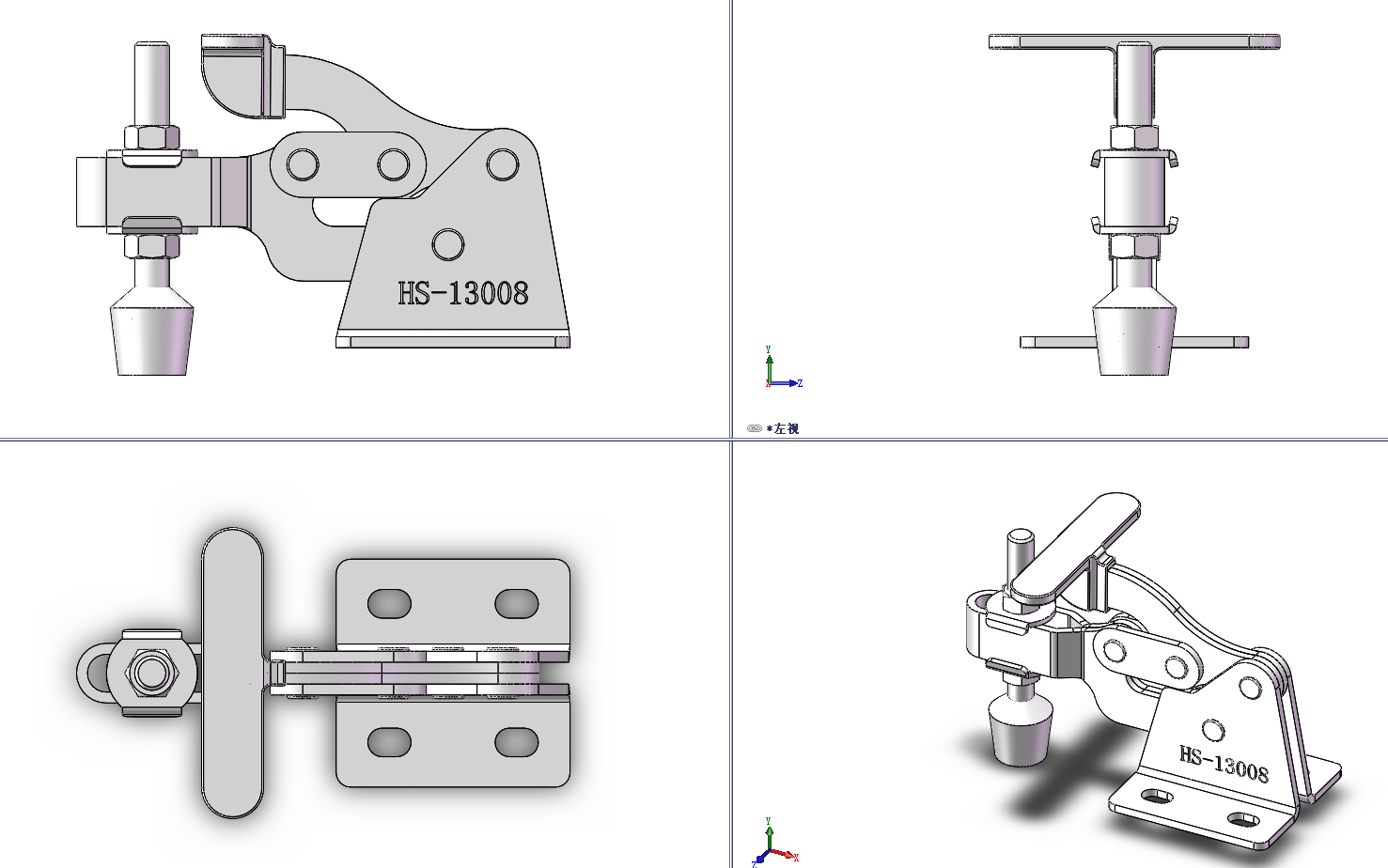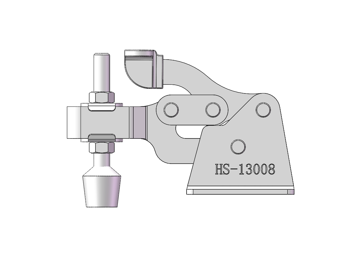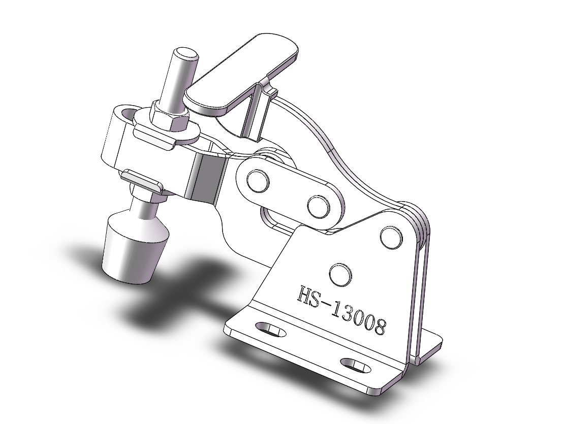 10款HS系列垂直式130夹钳,肘夹是通过连杆机构固定工件的夹具产品, 采用机械四连杆机构死点原理的一种快速夹持、快速打开机构,具有“准确定位、快速装卸、自锁夹紧”功能。模型包含通用格式STP