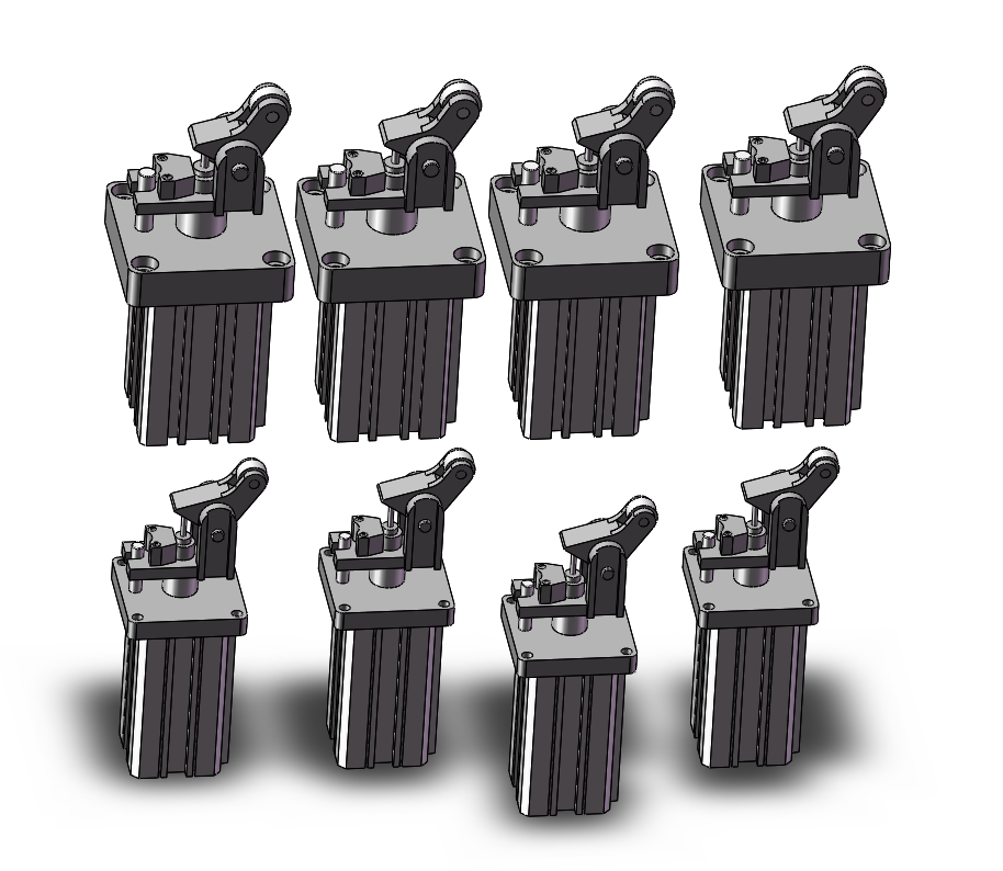 8种RSH系列重载型止动气缸模型 ,动气缸通常在运输线上,气缸伸出时可把运输线上物件挡住,而无需把运输线停止,气缸缩回时便会继续运送物件。模型包含通用格式