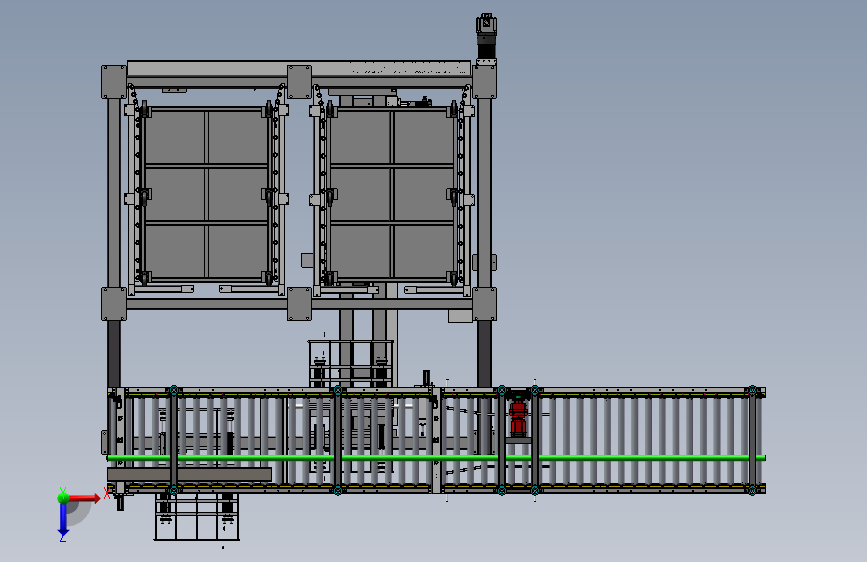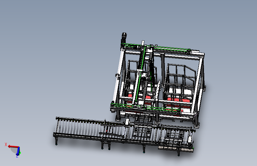 x轴由伺服+双边同步带及导轨驱动,y轴由同步带及导轨驱动,z轴由双层同步带驱动实现倍速双倍行程。