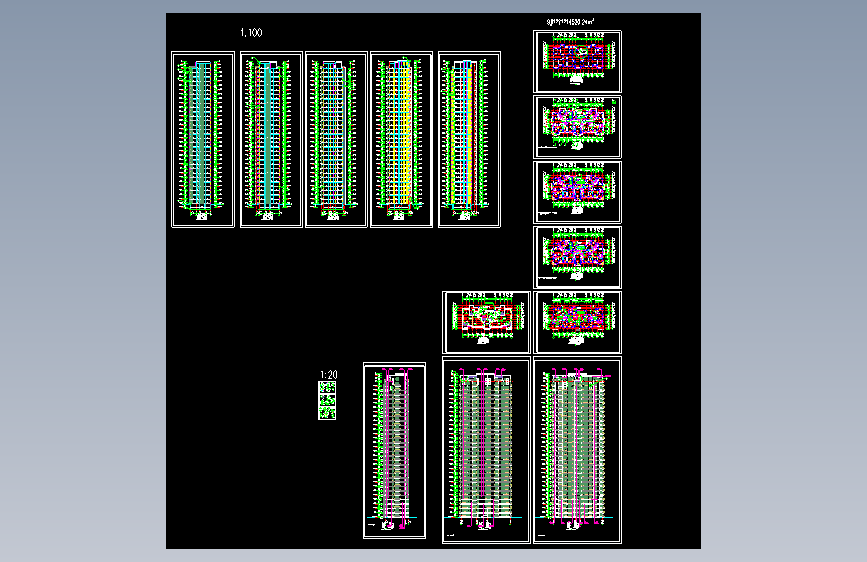 图纸包括:建筑平面图,立面图,剖面图,节点详图等17张建筑图;基础平面布置图,承台、承台梁平面布置图,人工挖孔桩及桩承台详图,底板配筋图,剪力墙平法施工图,梁平法施工图,楼板配筋图,墙预留防水套管图,节点详图等22张结构图