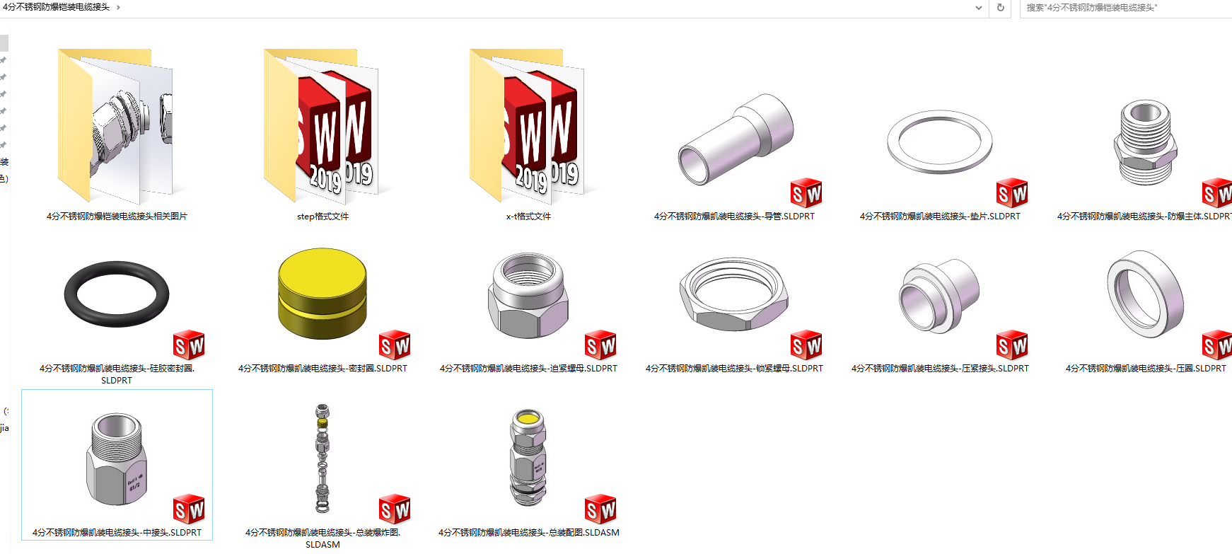 | 9 | 4分不锈钢防爆凯装电缆接头-总装配图.SLDASM | 2.87M |