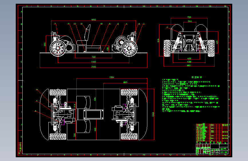 双电机驱动电动汽车底盘总布置设计含4张CAD图(ID:1780436)