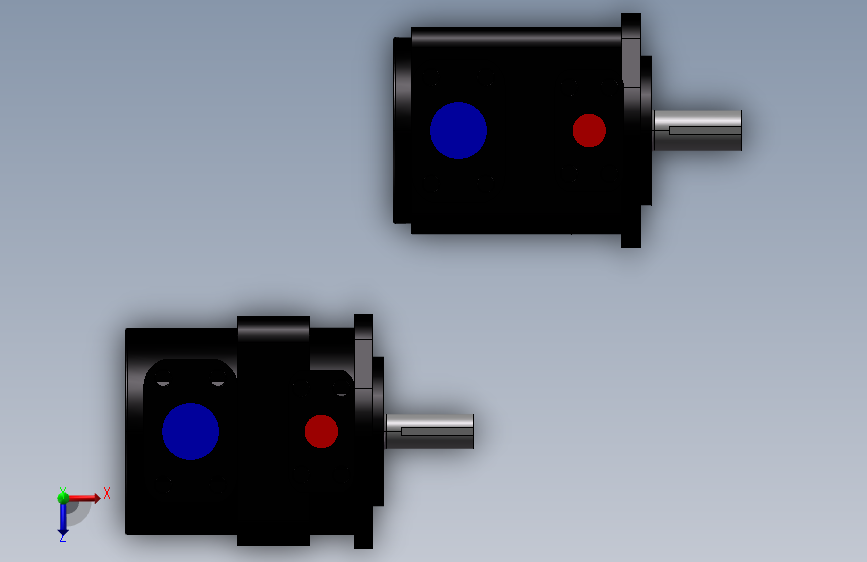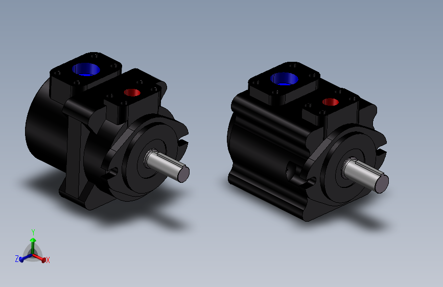 2款PFE型叶片泵模型 ,叶片泵是一种通过旋转叶片产生离心力来输送流体的设备。它利用旋转叶片在泵腔内的高速旋转,使流体从进口吸入并通过离心力推向出口,从而实现流体的增压和输送。叶片泵具有高效、稳定、结构简单的特点,广泛应用于工业、农业和家庭领域。