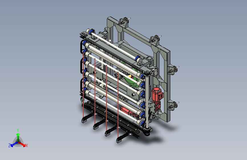 此三维模型为托盘治具链条顶升旋转输送线三维,托盘治具输送输送至链条线上,治具顶升起来,旋转台旋转,主要用于二条输送线90°转换位置,上面设计有光电开关,是成熟设备,欢迎大家下载