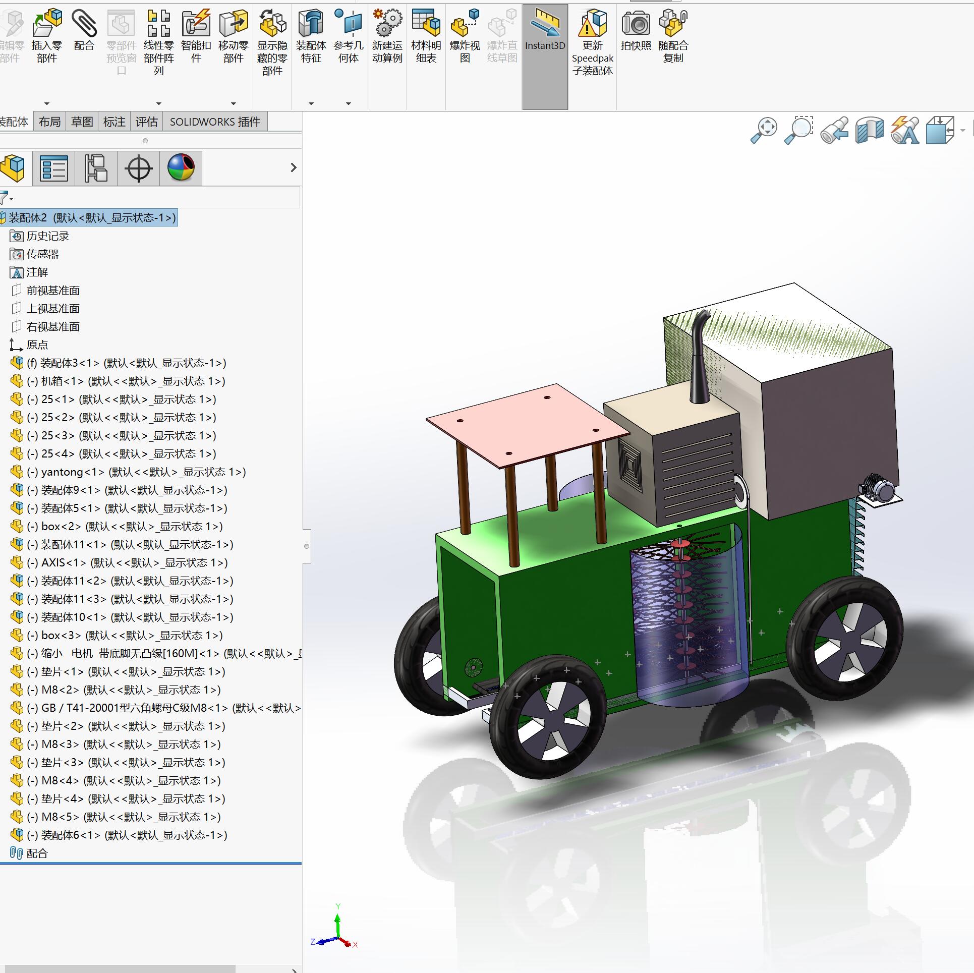 振动式红枣收获机设计三维SolidWorks模型3D建模图纸(ID:1891543)