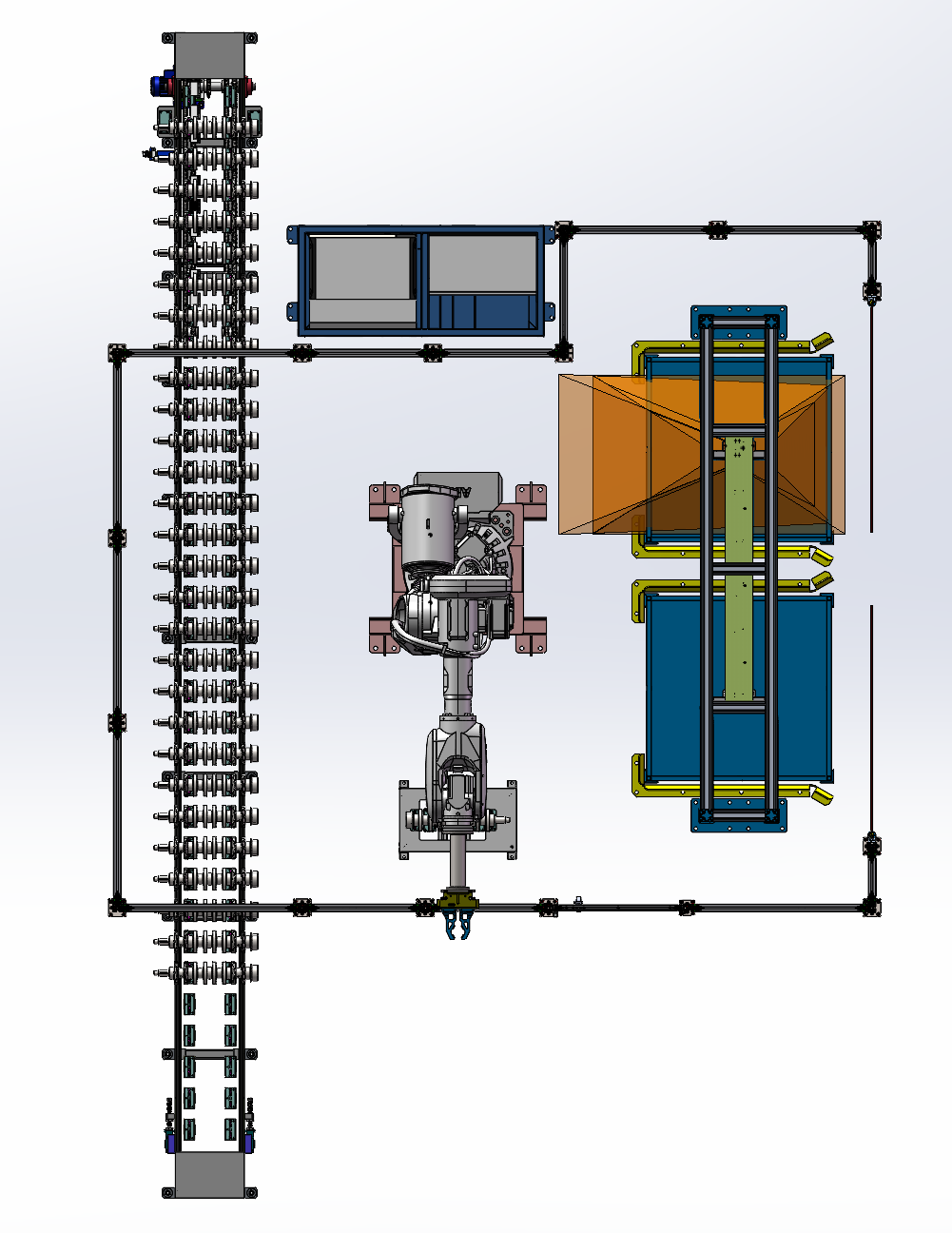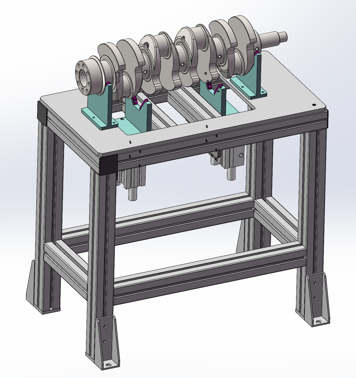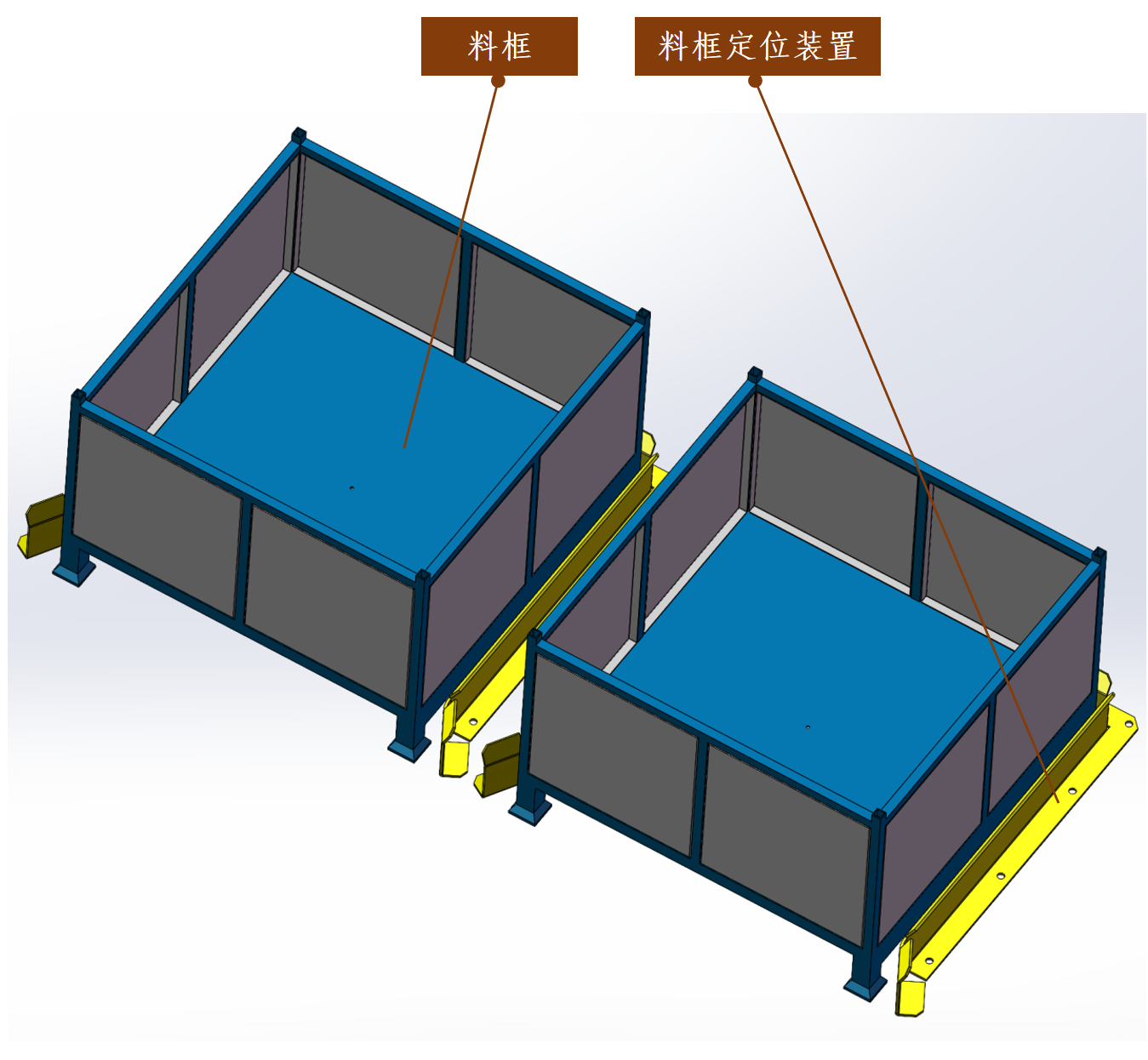 人工将满料框曲轴用叉车将其放置到料框定位装置中;