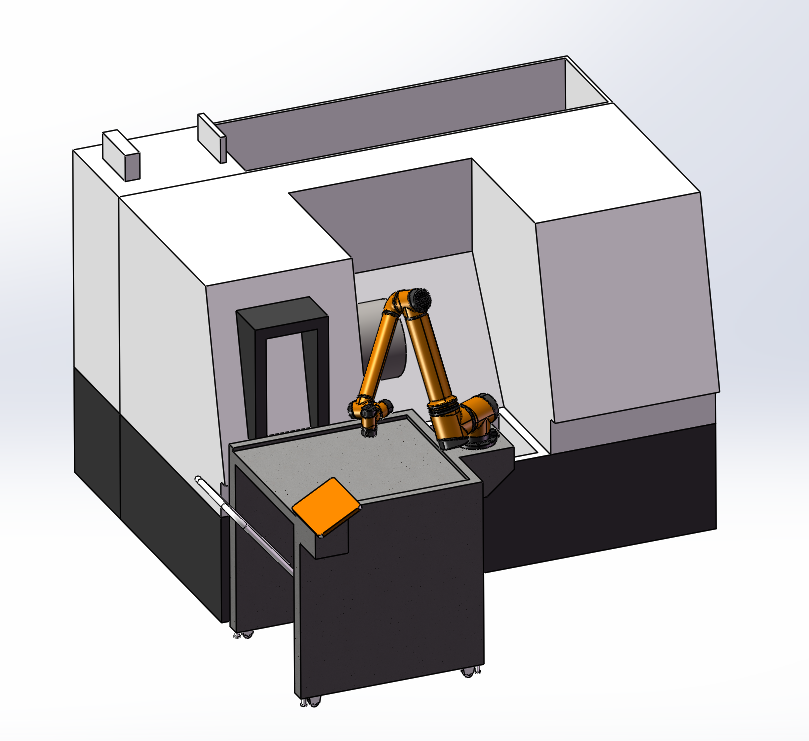 此模型是由SOLIDWORKS2022版建模而成。CNC 机器人上下料自动化是现代制造业中提高生产效率、降低成本、提升产品质量的重要技术手段。