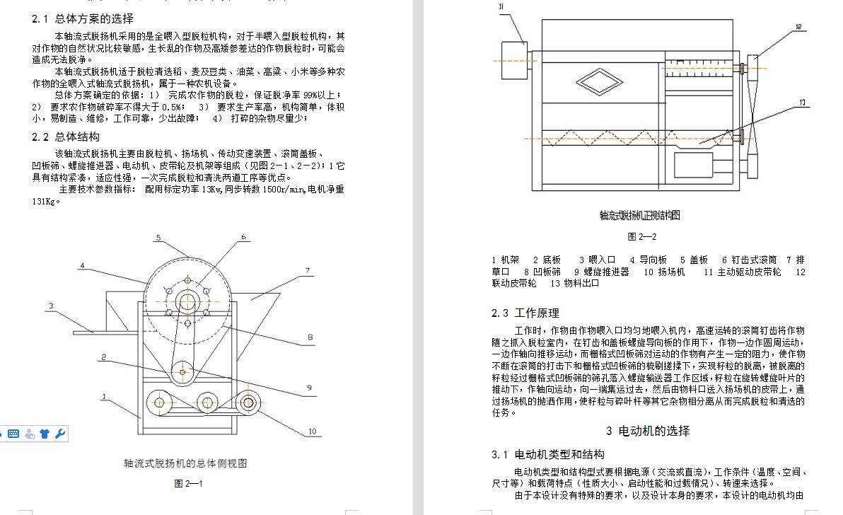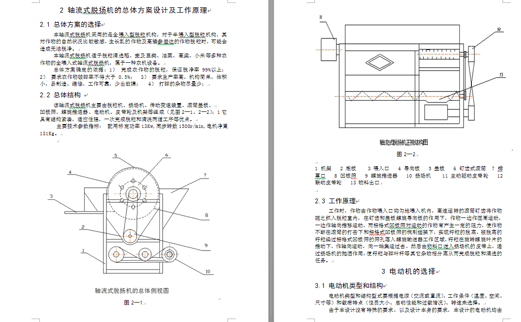轴流式脱扬机工作部件设计(ID:2009729)