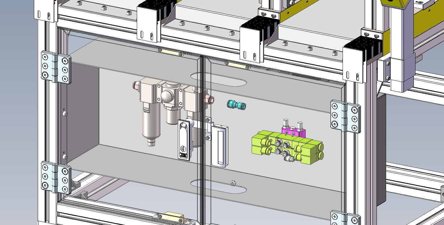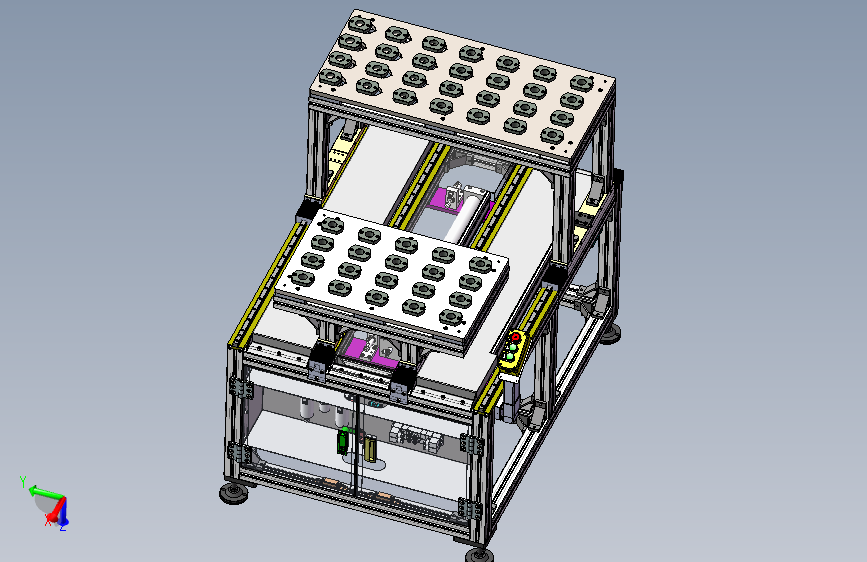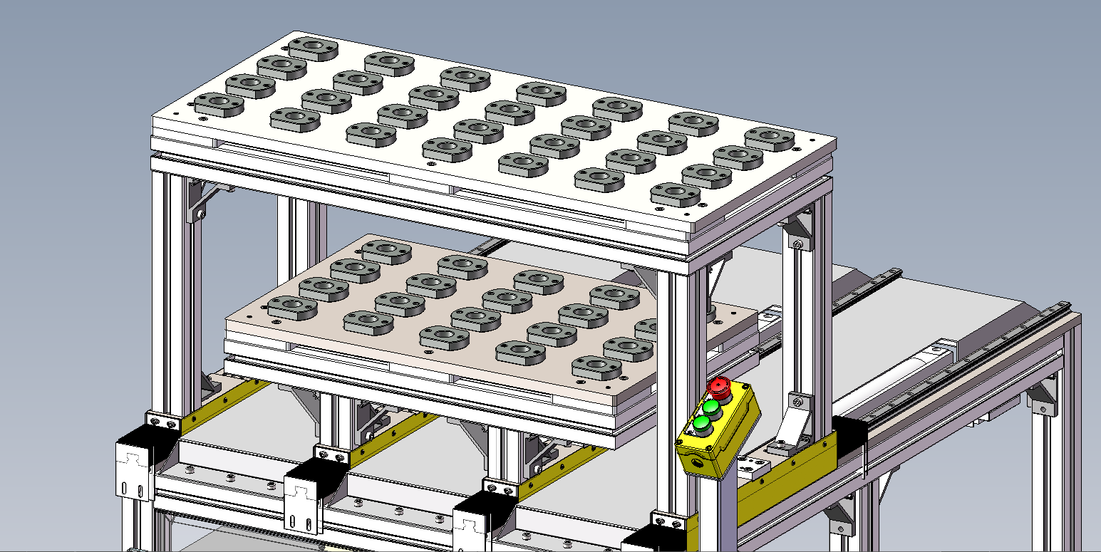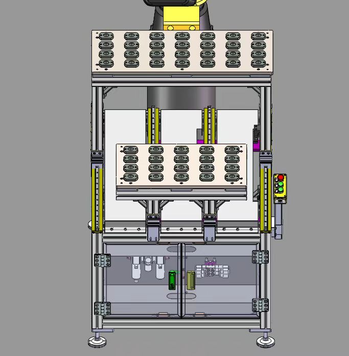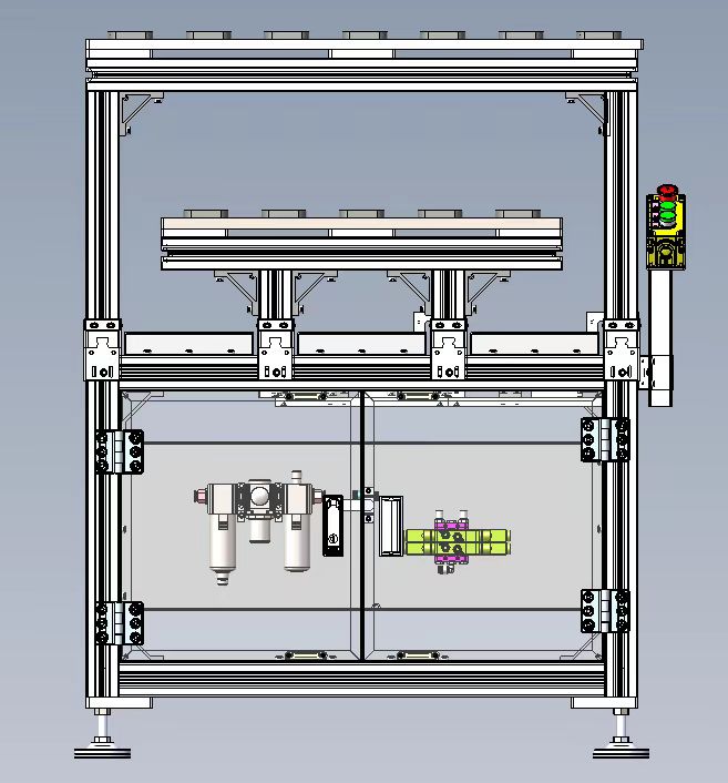 机器人双层气缸式上料滑台模型,由铝型材支架、HIWIN直线导轨、SMC滑台气缸组成、高度可可调脚杯、缓冲器等等组成;其工作原理:气缸带动安装板在直线导轨上往复运动,产品或者工装夹具放在安装上可以往复送料。此设计已经有落地项目事宜,稳定可靠,供大家参考学习,欢迎大家下载。