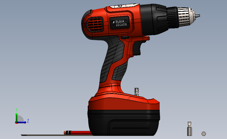 百得”充电钻 起子 3D模型SolidWorks三维设计图(ID:2442041)