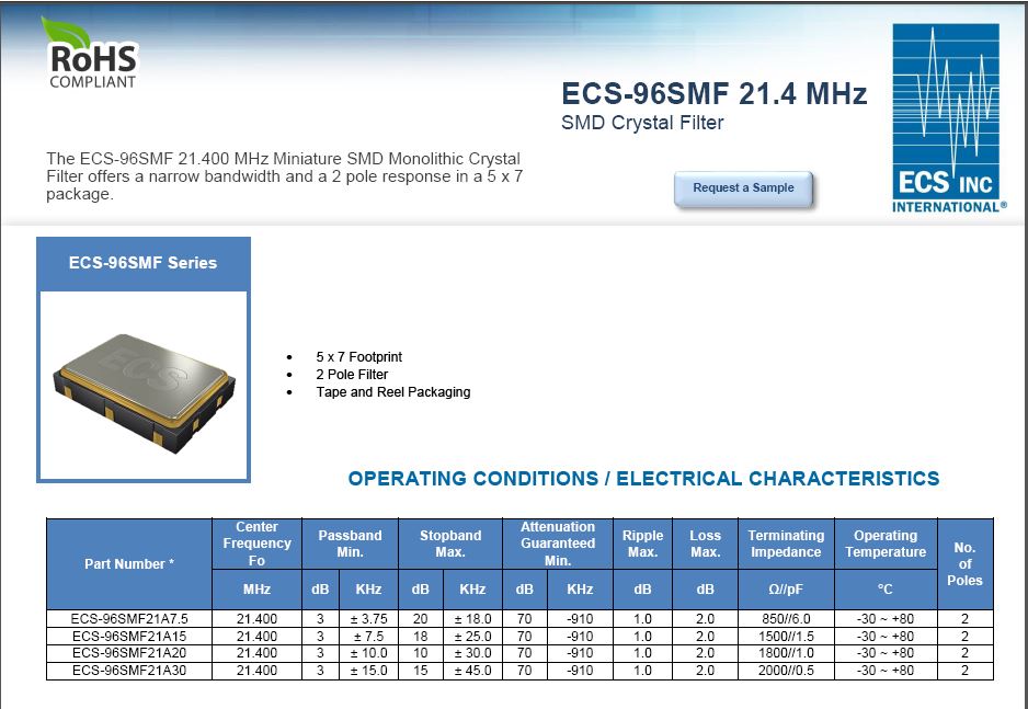 ECS 单片晶体滤波器 (MCF) 7050 机箱(ID:2506153)