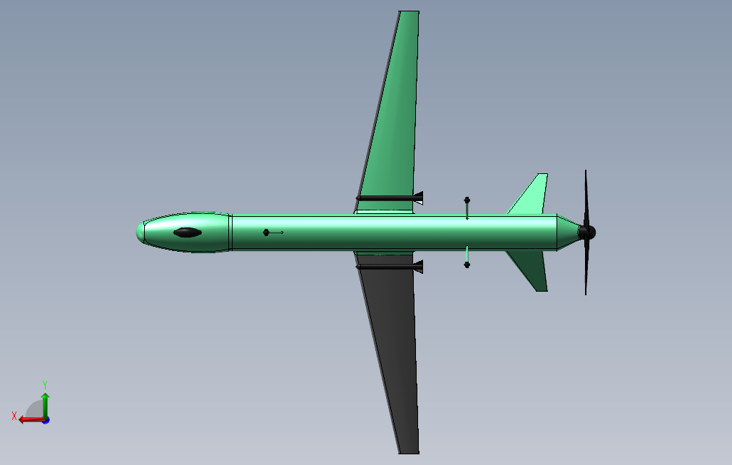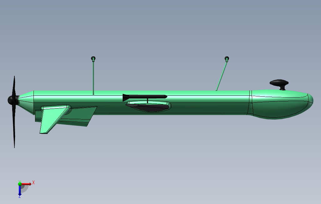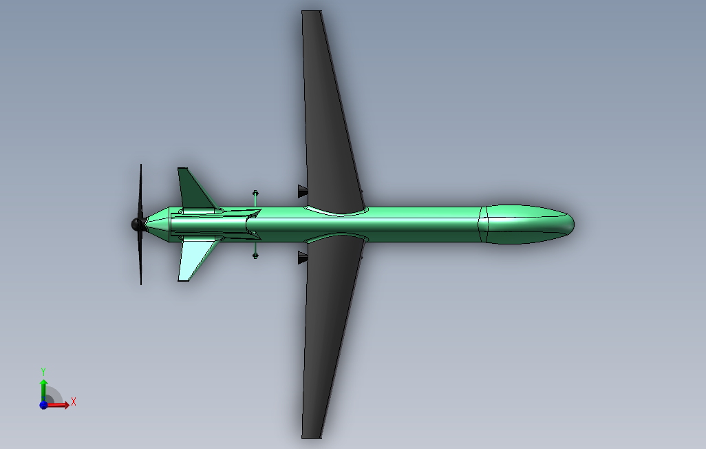 这个模型是以全球鹰为原型绘制的,上单翼布局,尾部有一个三叶的螺旋桨,机身细长,在机头下部位置可以布置一个云台,使用尾推式布局,动力损失小,有着更长的续航时间。solidworks 2018 版本,另有STP格式文件。