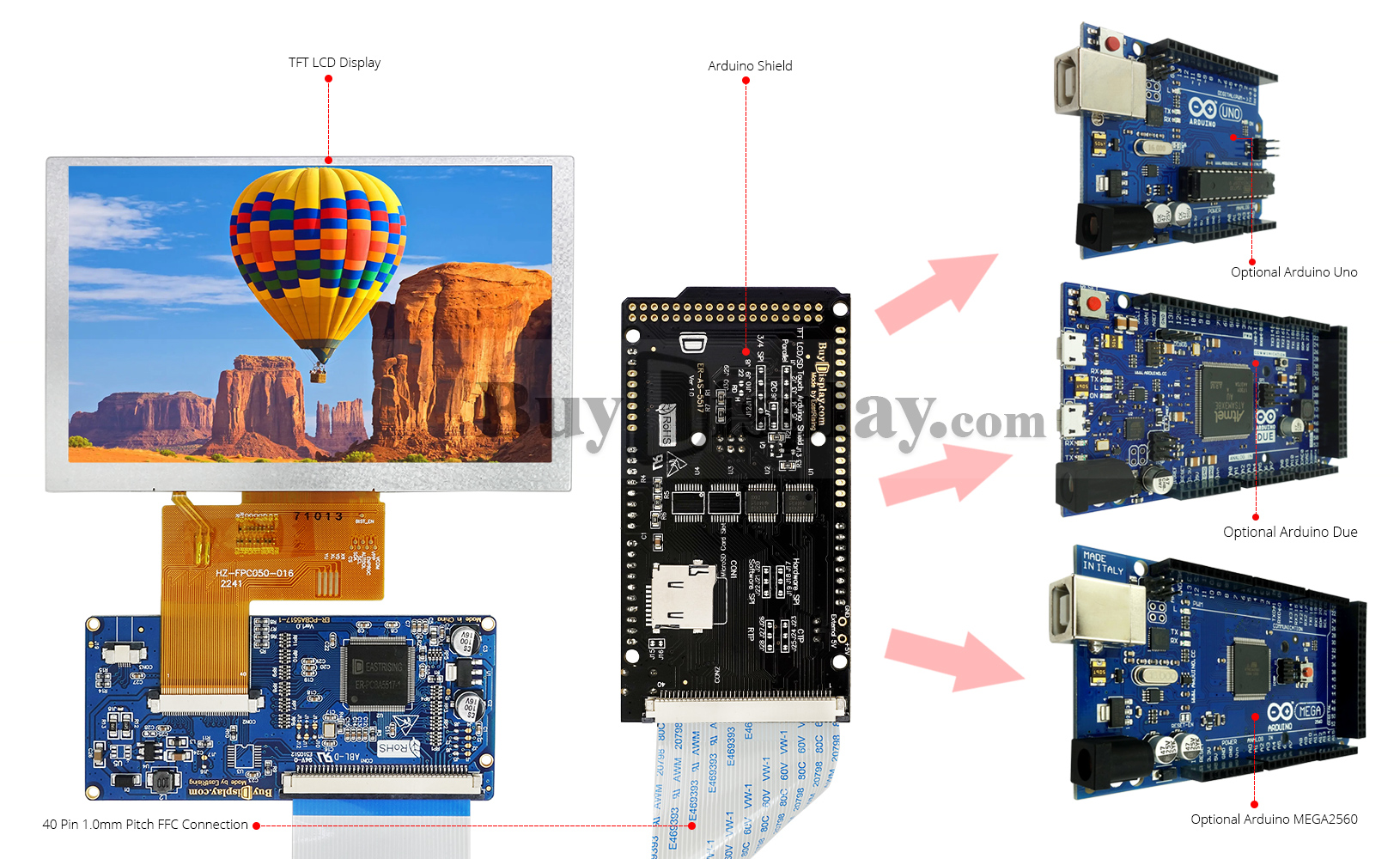 低价格液晶显示屏 4.3,5,7 英寸 Arduino SPI I2C TFT 触摸屏(ID:2549818)