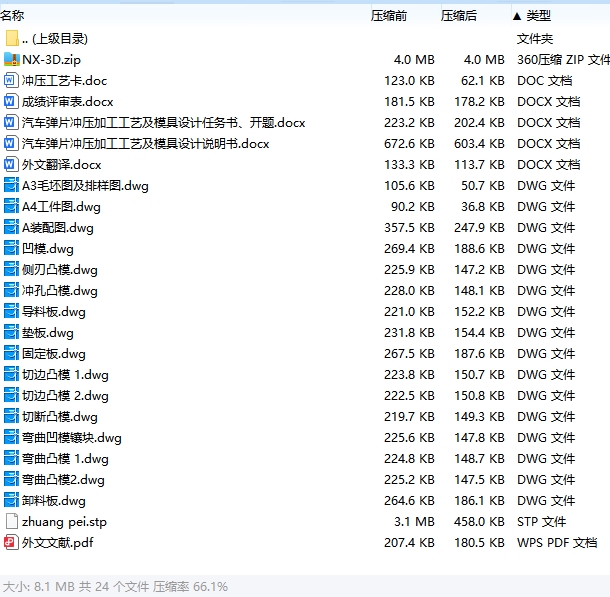 8 | D300简介-汽车弹片冲压加工工艺及模具设计-级进模含开题、NX三维及16张CAD图.pdf | 1.93M |