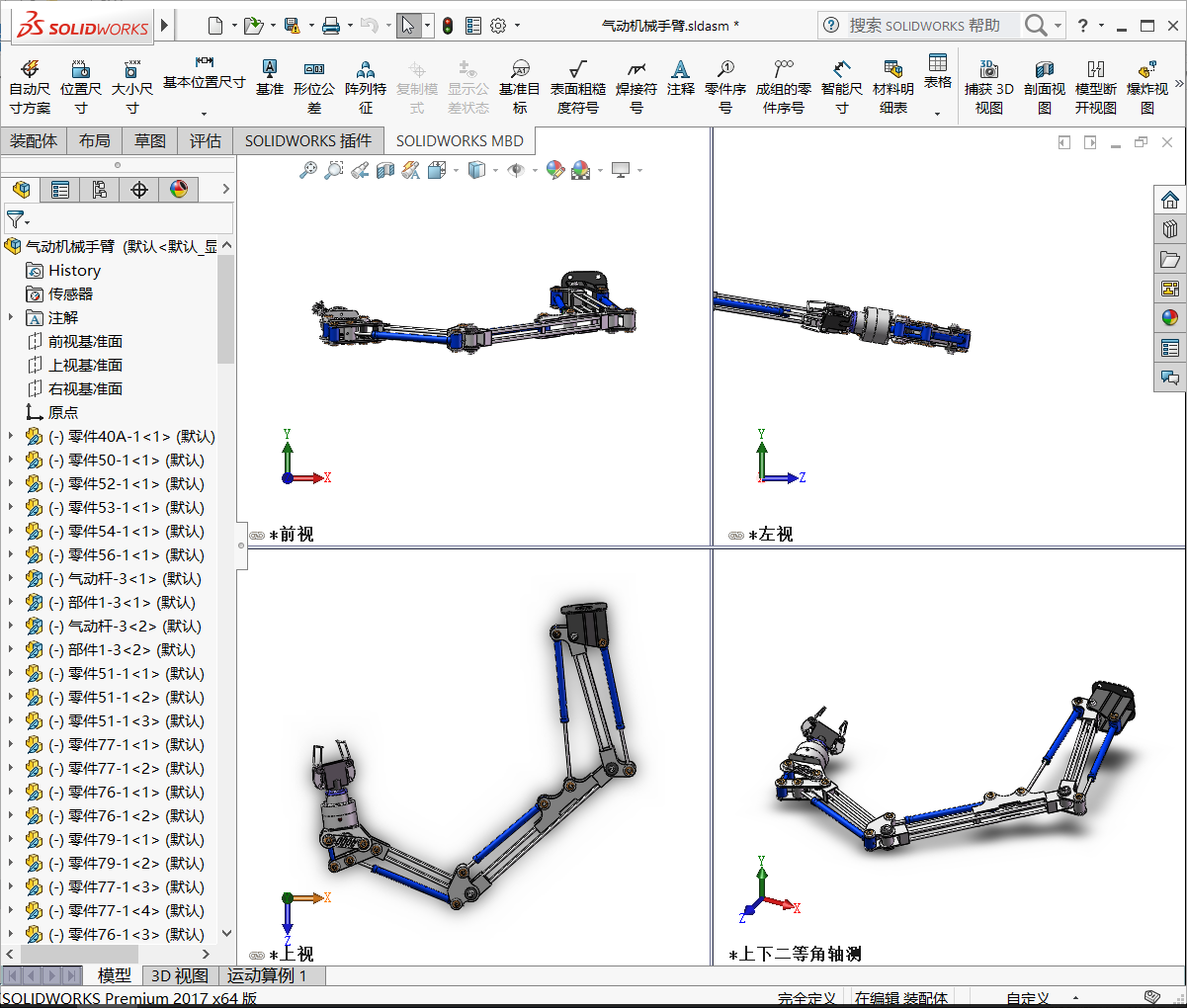 气动机械手臂(多种格式下载) 3D模型SolidWorks三维设计图(ID:2692370)