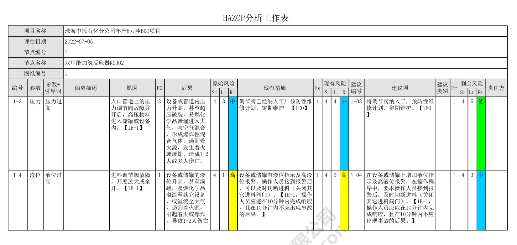 珠海中冠8万吨年1,4-丁二醇项目初步设计(ID:2697633)