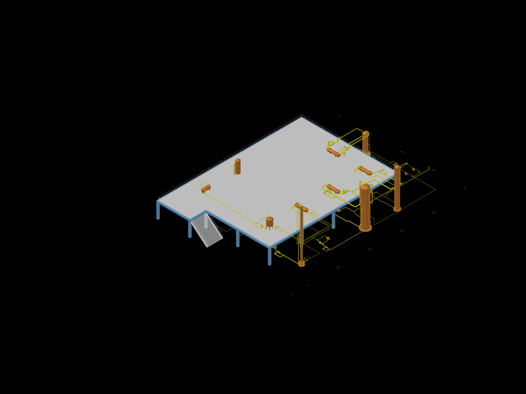 84 | 带框架的甲硫醇合成车间三维配管图(西南等轴测图).bmp | 2.25M |