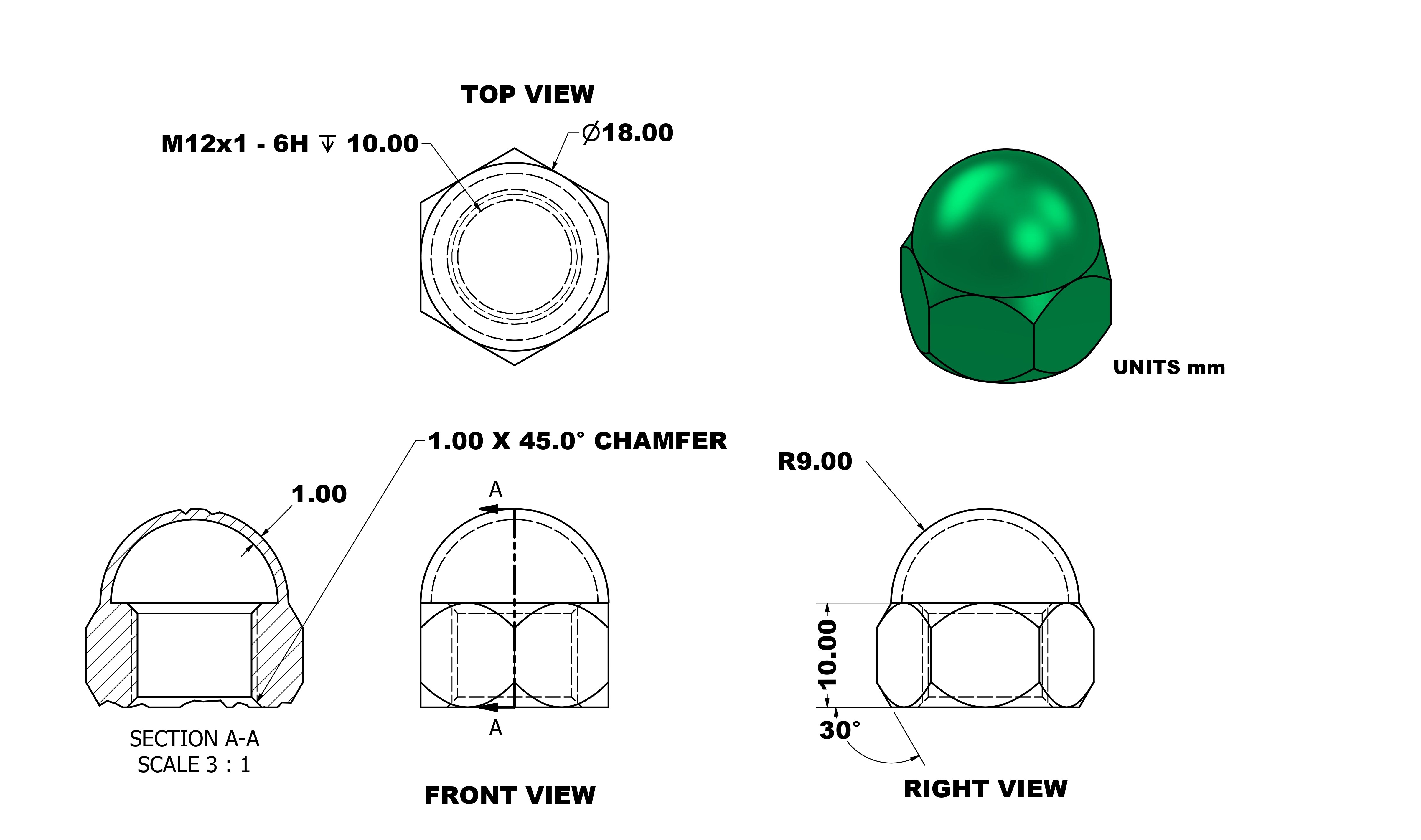 3D CAD 基础练习_ 板栗螺母螺栓_ 球形螺母_ Autodesk Inventor Pro(ID:2722197)