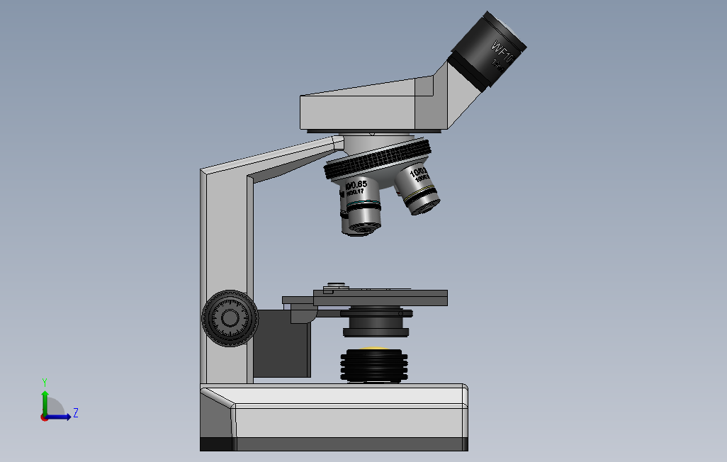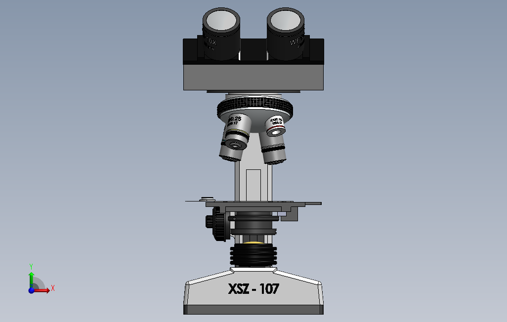 BN107型显微镜模型,该三维图为显微镜,显微镜是由一个透镜或几个透镜的组合构成的一种光学仪器。主要用于放大微小物体成为人的肉眼所能看到的仪器。模型建立时绘制了较多细节,比较详细。solidworks 2017 版本,另有STP格式文件。欢迎朋友下载。