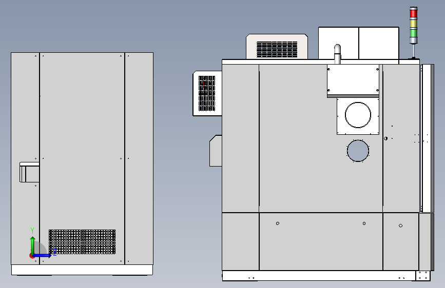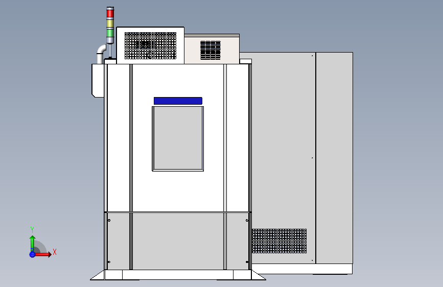 1立方隔振、光学窗口高低温试验箱,机器底板开孔穿大理石平台立柱,机器侧面具有光学窗口,为保证光学窗口不结霜凝露,窗口上安装风刀,热风通过风刀均匀的吹到光学窗口表面!