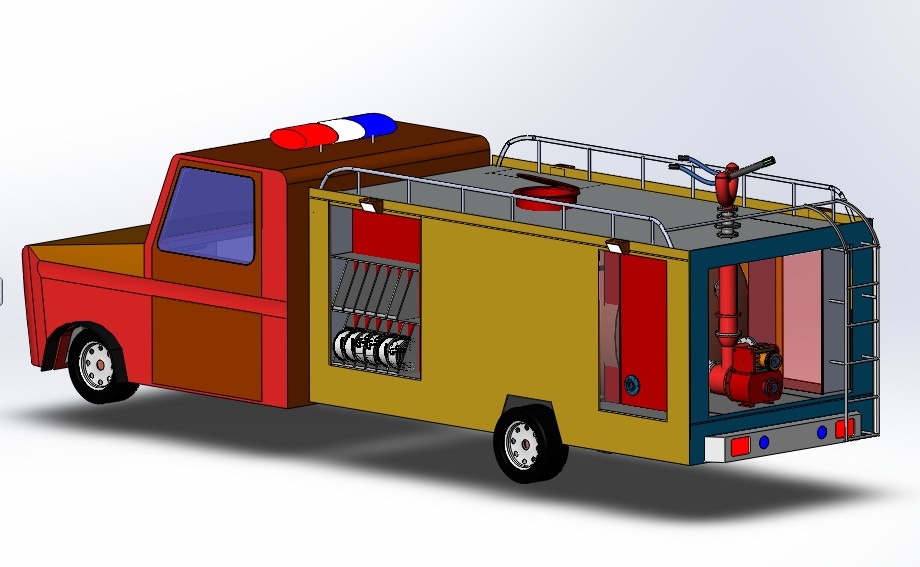 消防车,又称为救火车,是专门用作救火或其它紧急抢救用途的车辆。消防车按功能可分为泵车(抽水车)、云梯车及其它专门车辆。模型建立时绘制了较多细节,比较详细。solidworks 2016 版本。欢迎朋友下载。