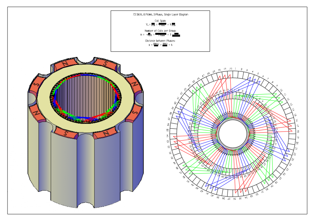 72 槽,8 极,三相,单层图电机绕阻(ID:2853125)