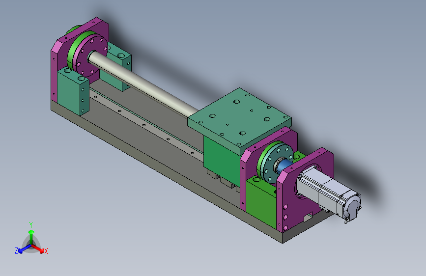 三轴滑台模组设计,由伺服电机经滚珠丝杠驱动,X轴由2个电机,Y轴和Z轴各1个电机,X轴和Y轴行程为600mm,Z轴行程为300mm。导轨为BRH30AL,伺服电机功率为400w,滚珠丝杠为3205。