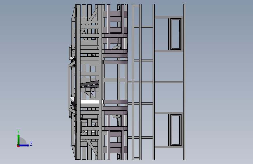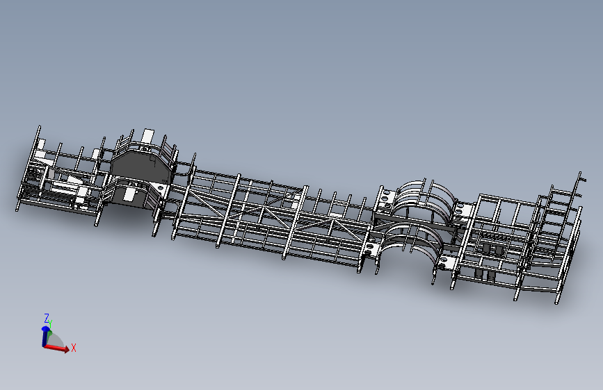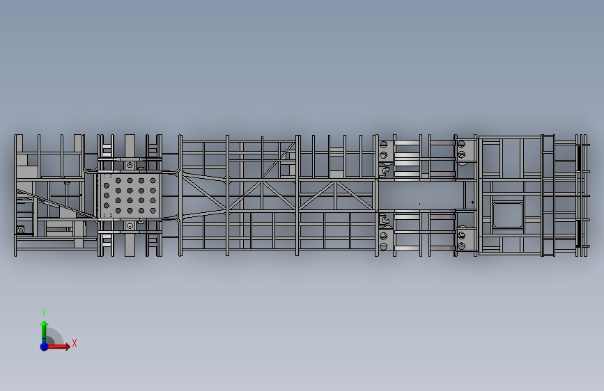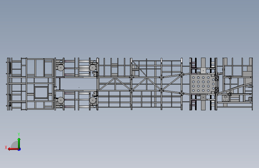 这是12米客车底盘车架、底入口车架、全承载车架,这个底盘适用于城市公交车底盘车架,结构合理质量轻,承载性能好,强度很高。可供设计者学习参考。