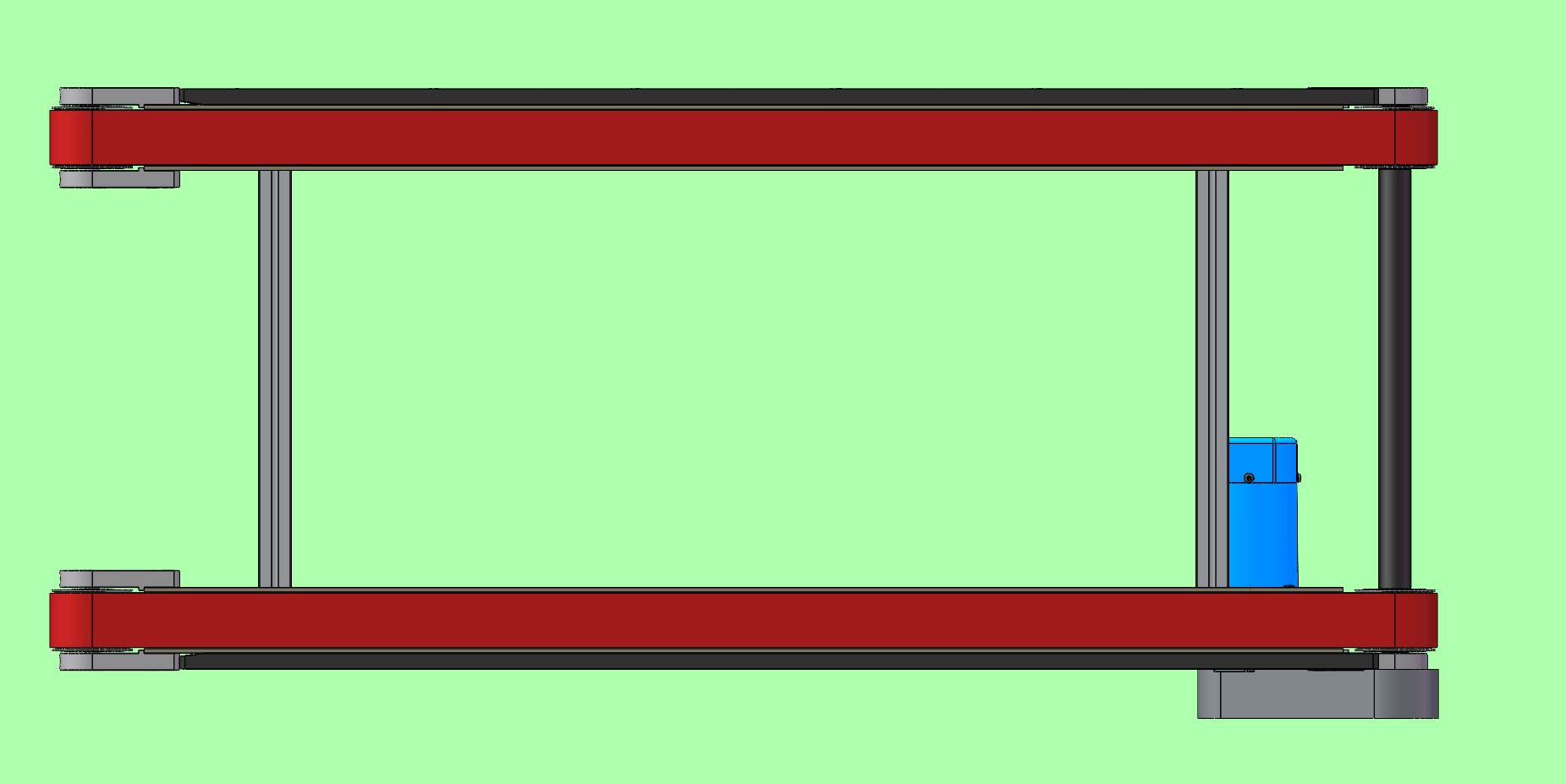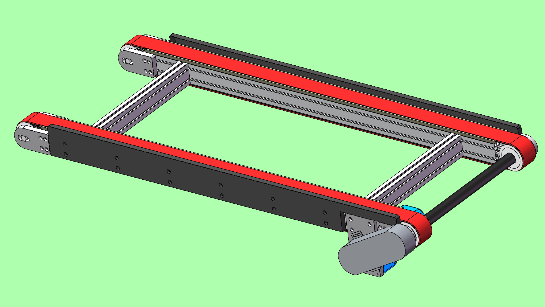 双同步带输送线-一种双列同步带输送机,该结构整体为型材框架,由头部减速电机驱动,两边同步齿形带进行传动,增加放跑偏导条,更有效防止同步带跑偏。结构简洁,一实际生产,可对标misumi与怡合达标准件皮带线,提供源文件下载。