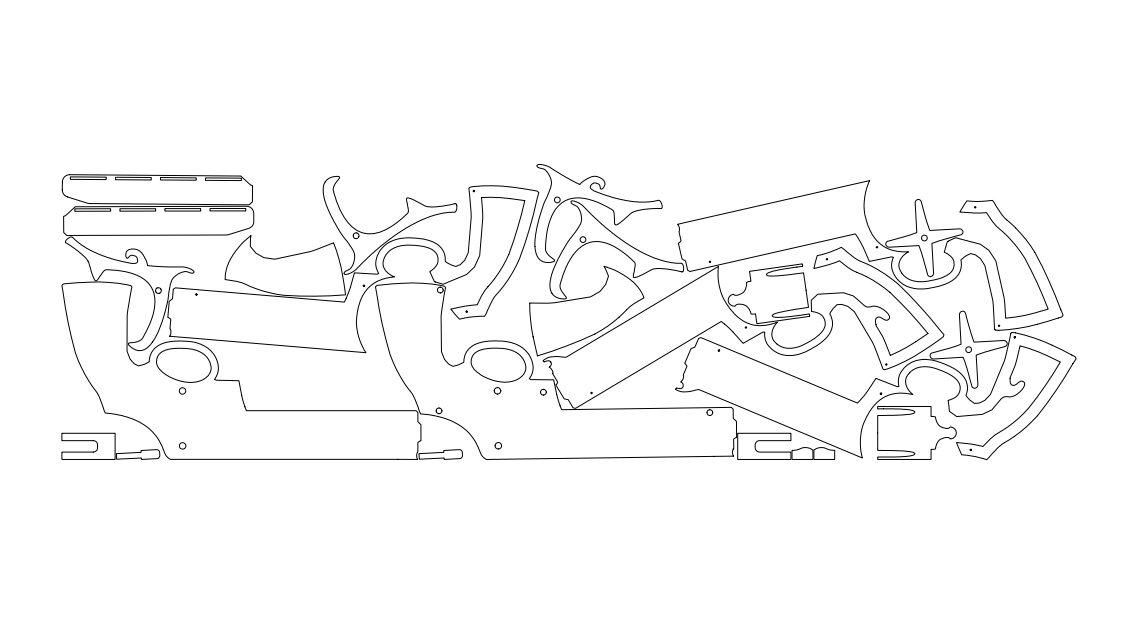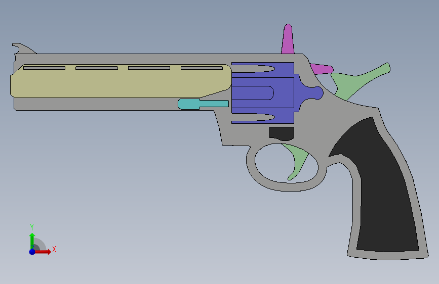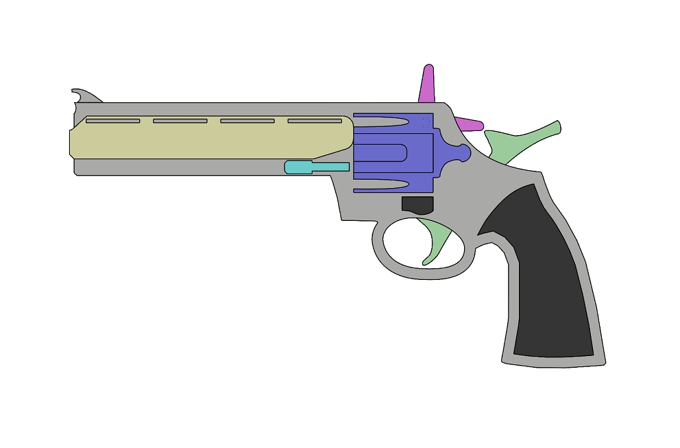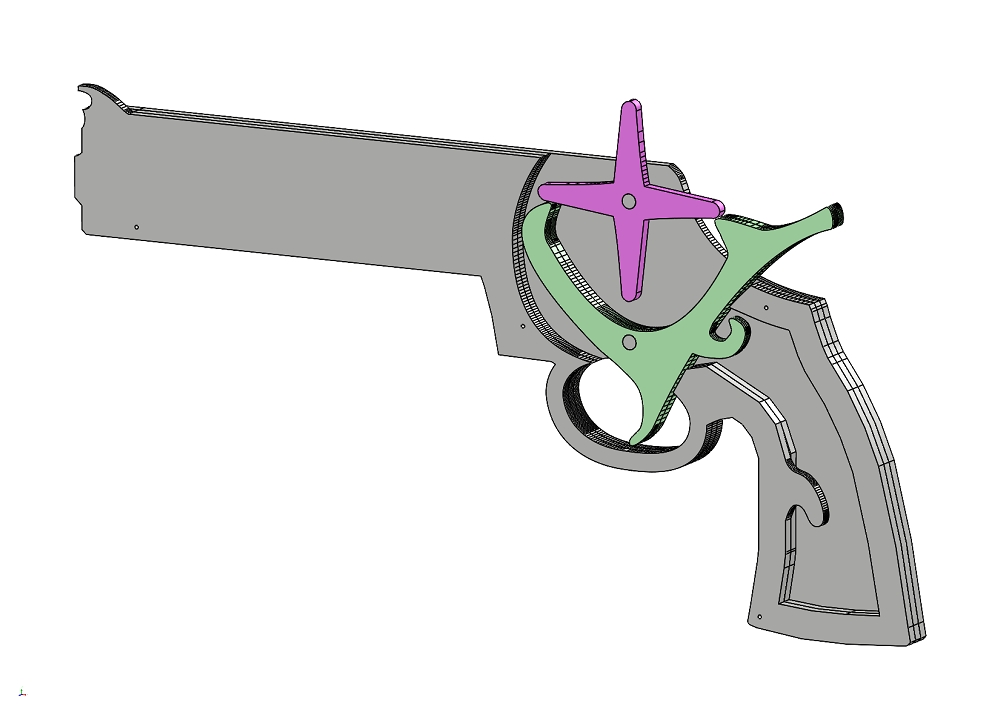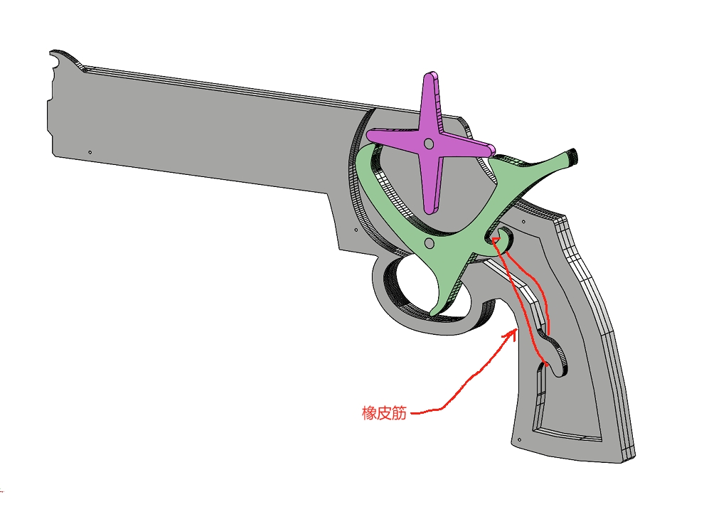这是一款橡皮筋枪玩具,外形仿照左轮,可以连发橡皮筋。可以根据图纸使用3d打印,或者使用3mm不锈钢板,亦或使用瓦楞板切割堆叠制造。文件里还包含PDF排版图。