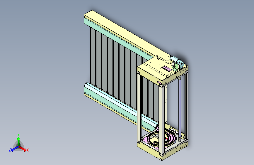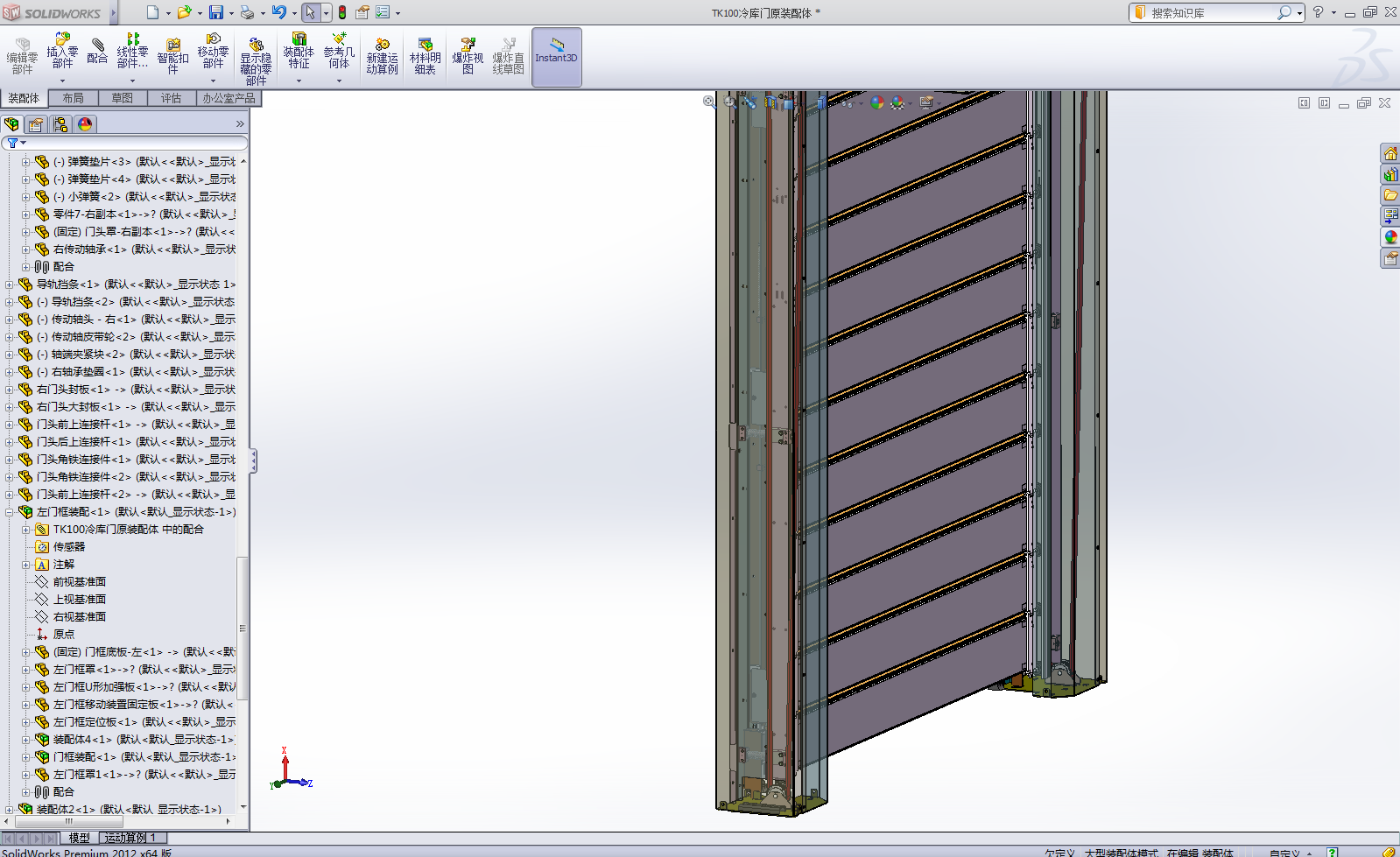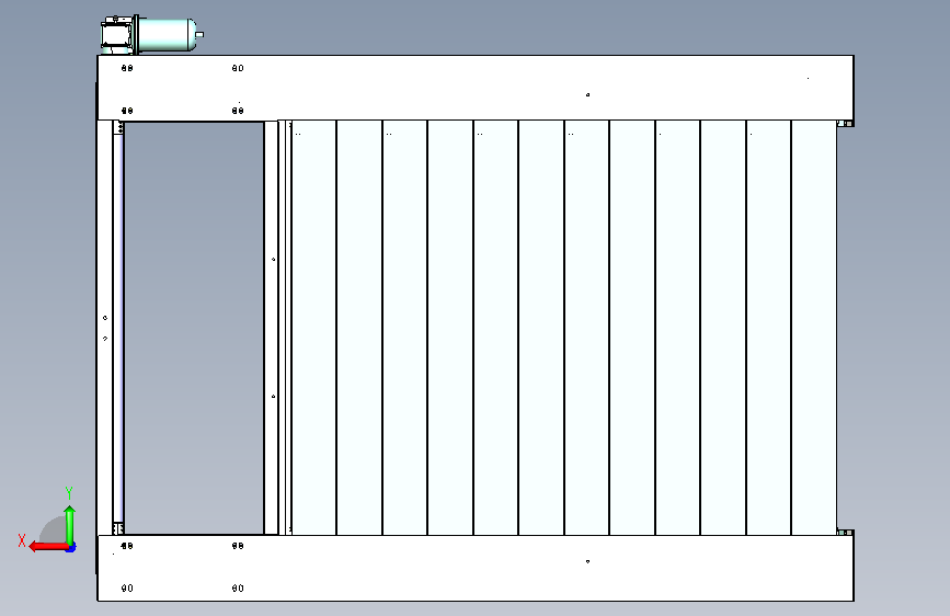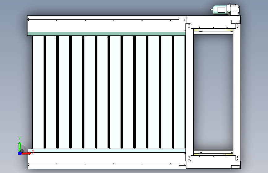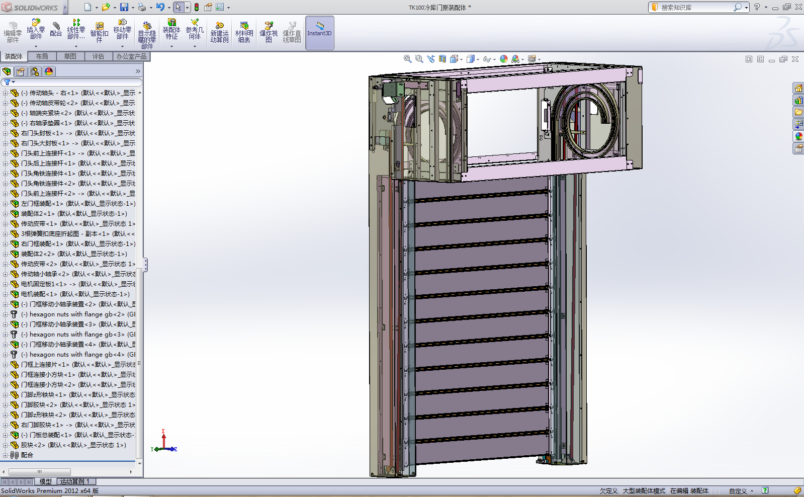 本图纸为中转冷库常用的冷库门,2.2KW电机,100mm厚发泡胶门板,同步轮传动,因零件数量较多,文件过大,仅上传stp格式。
