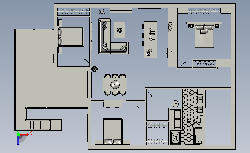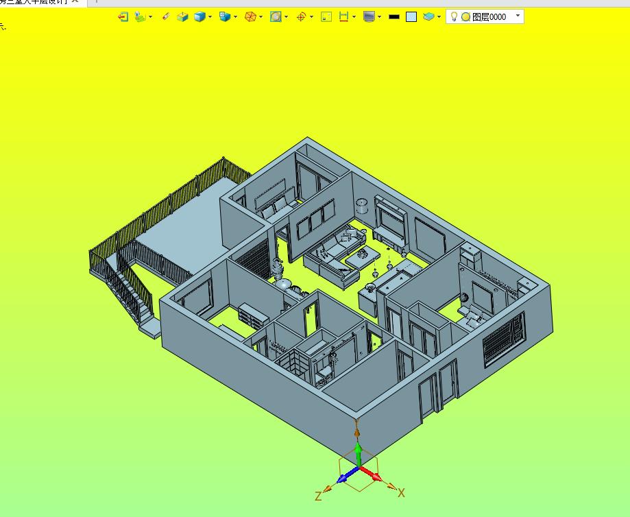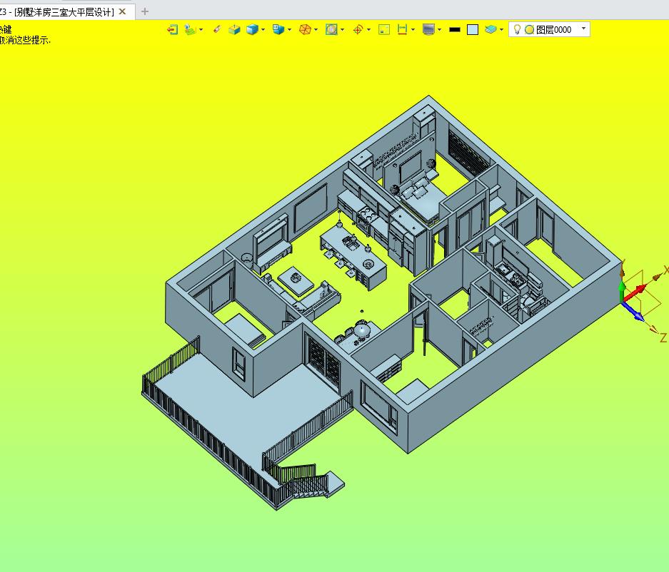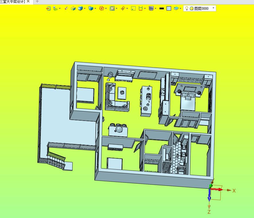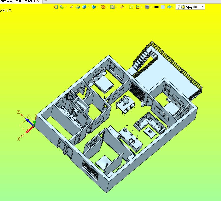 别墅洋房三室大平层设计装修效果图:采用大平层的房间进行布置,通过内置的装修进行设计,图纸细节比较多,结构新颖,可以用来修改,可以作为机械设计学员参考使用。