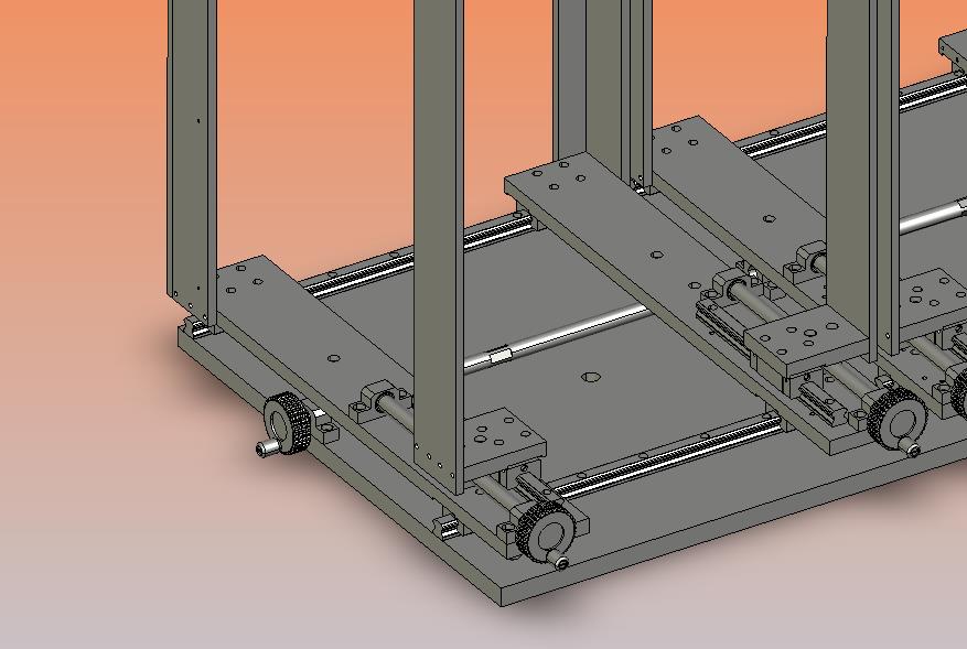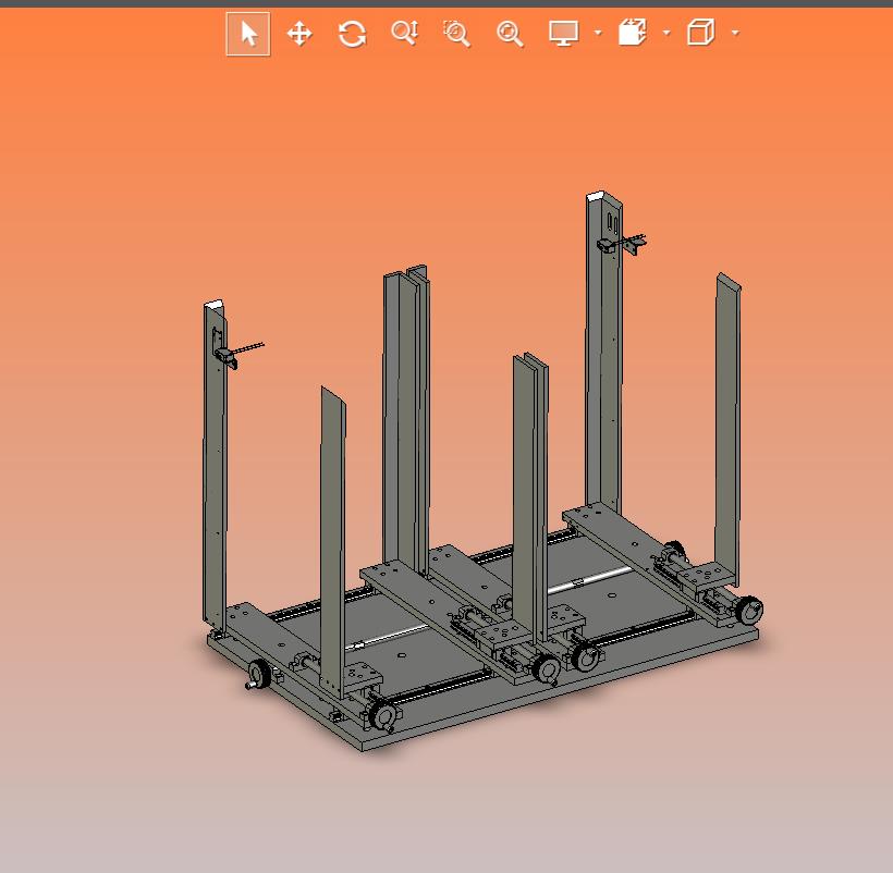 尺寸大小可调节的平板玻璃钣金放置台:下部设置有双摇杆进行摇动,实现放料框架收缩,是非常好用的学习参考资料,结构已细化,欢迎大家下载学习交流,谢谢。