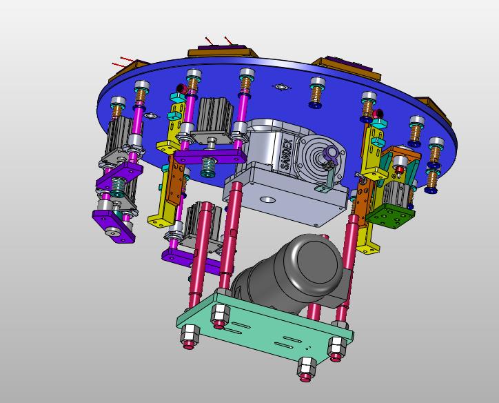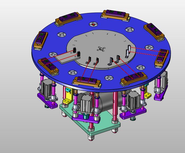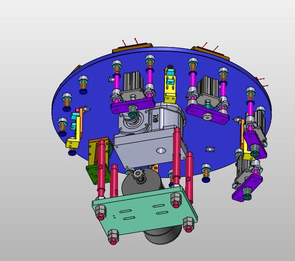 多工位带锁定的分装旋转台:下部设置有旋转分装台,采用电机进行旋转,每个工位采用定位,细节已经做到位,可以修改,如果感兴趣,也可以作为参考学习使用。